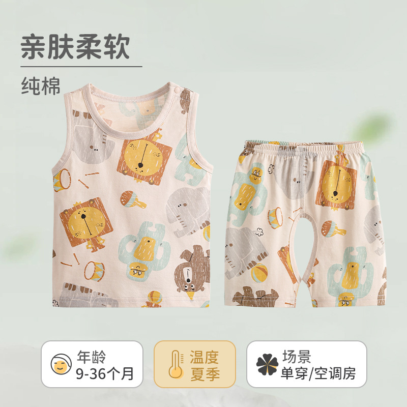 아기의 여름 옷 남자의 분할 세트 유형 순수한 면화 조끼 봄 및 여름 내복 복 보호 소년 소녀를위한스토어 가기