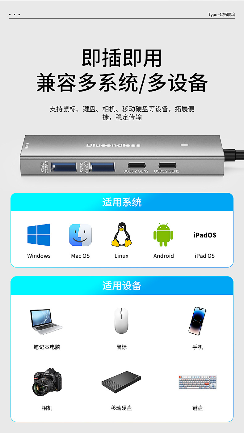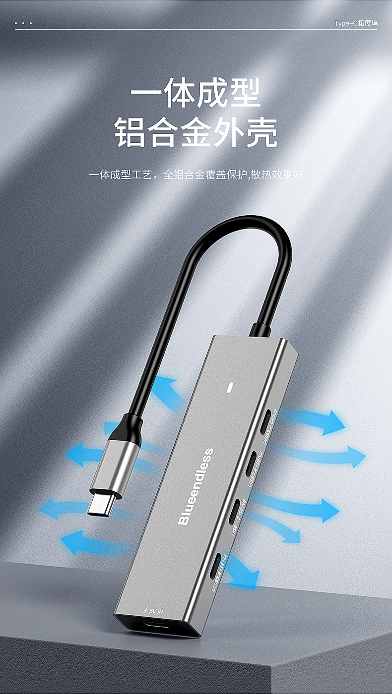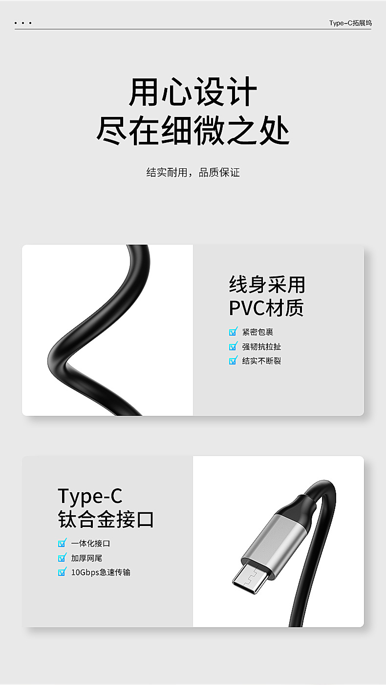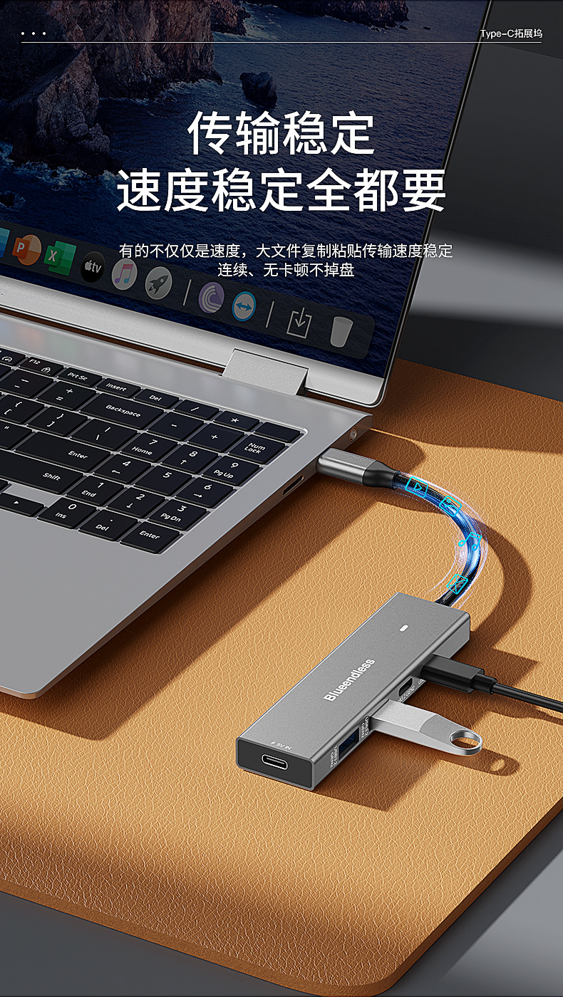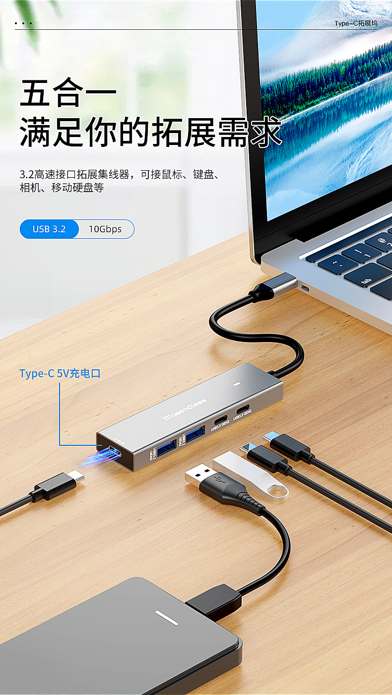 타입-C 허브 2A+2C USB3.2 Gen2 분배기 10Gbps 노트북 휴대폰 확장 도크 허브스토어 가기