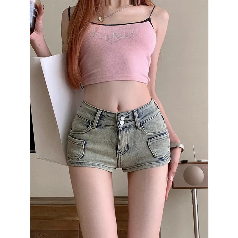 인터넷 유행 봄과 여름 낮은 허리 뜨거운 소녀 데님 슈퍼 반바지 여성 포켓 디자인 센스 섹시 슬림 핏 패션 청바지스토어 가기