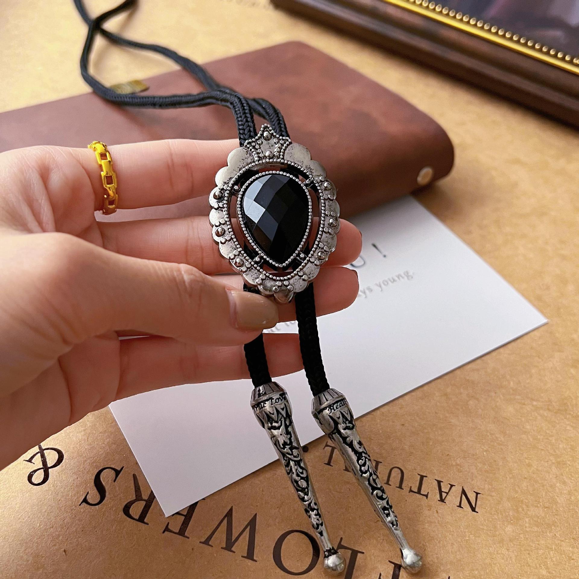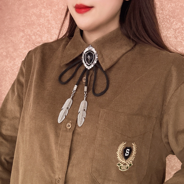 빈티지 올드 스타일 워터 드롭 타이 웨스턴 데님 캐주얼 폴로 칼라 로프 중립 핸드 타이 나비 칼라 플라워스토어 가기