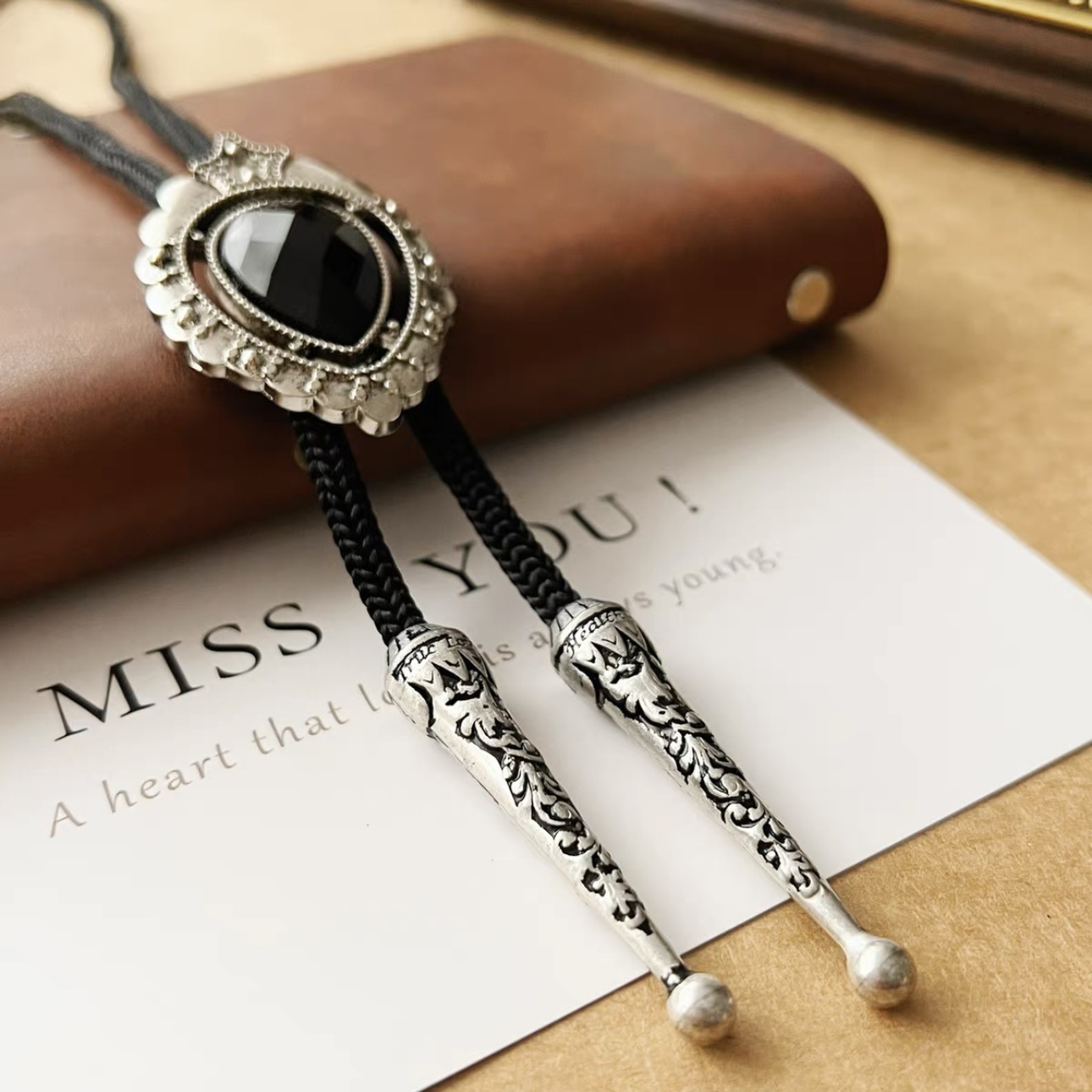 빈티지 올드 스타일 워터 드롭 타이 웨스턴 데님 캐주얼 폴로 칼라 로프 중립 핸드 타이 나비 칼라 플라워