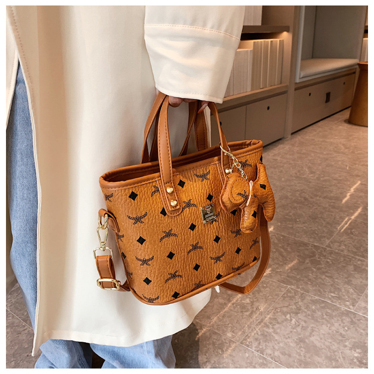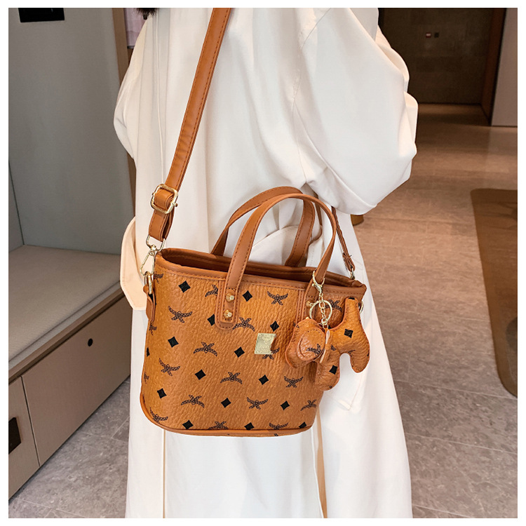 여성 가방 2024 새로운 우아한 올 매치 야채 바구니 여성용 가방 고급 인쇄 숄더백 유행 버킷 여성용 가방