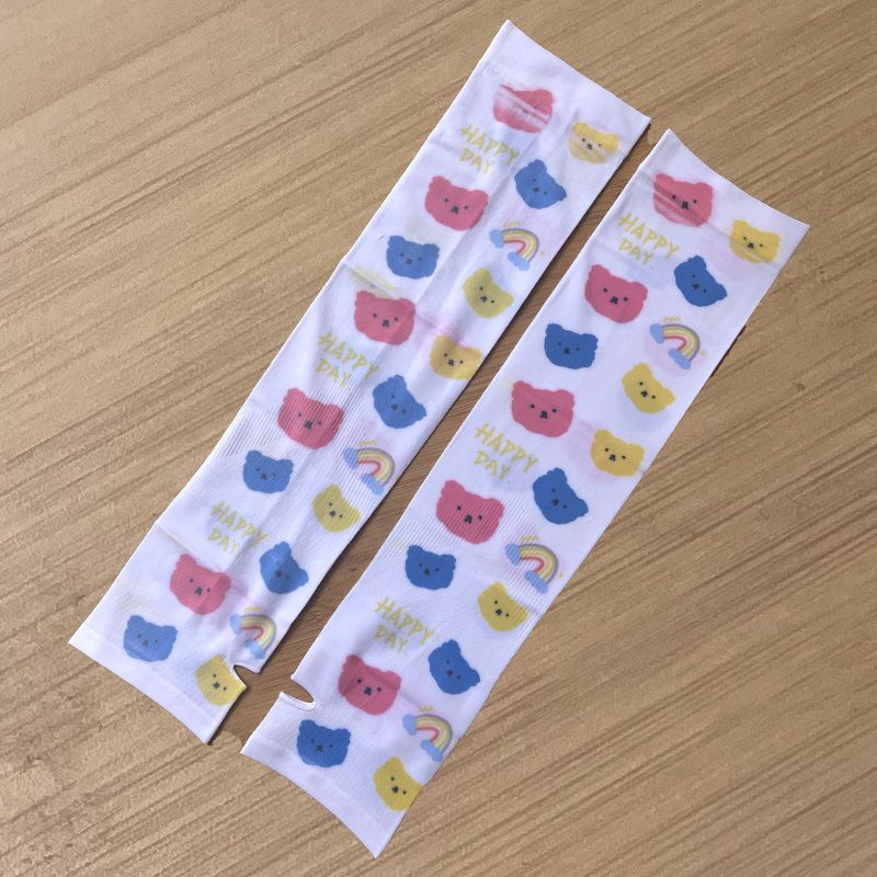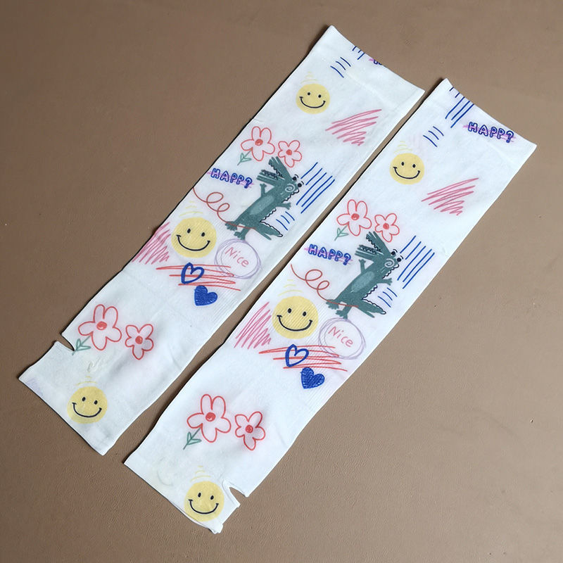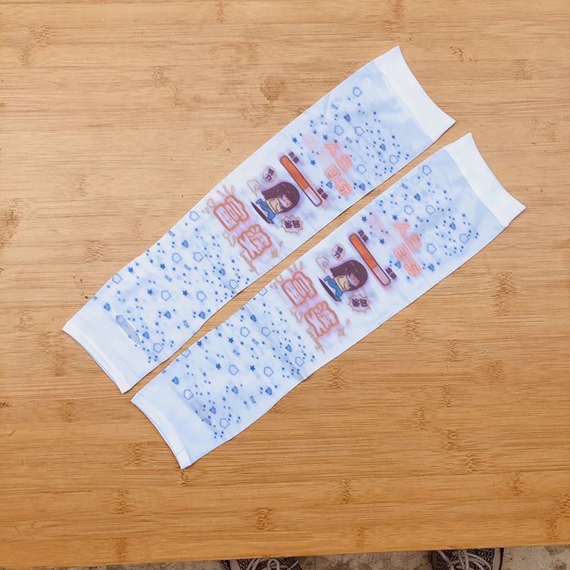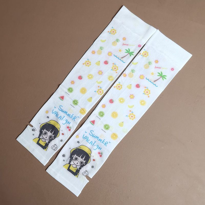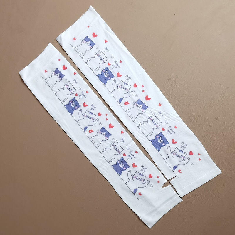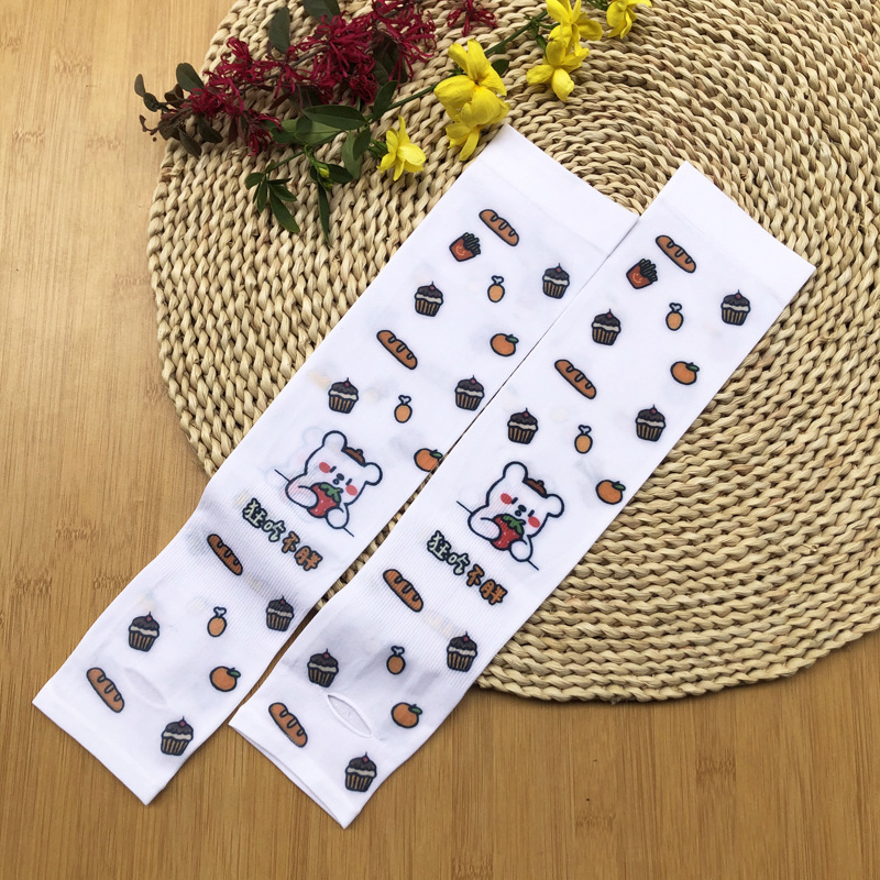 여름 시원한 통기성 태양 보호 오버 슬리브 여성 한국 스타일의 귀여운 인쇄 만화 연령 감소 팔 보호 UV 보호 얼음 소매 여성