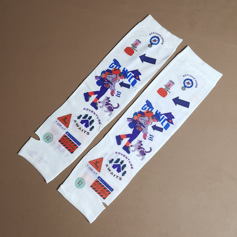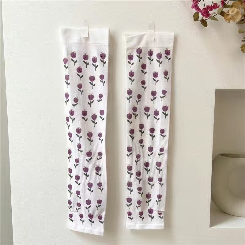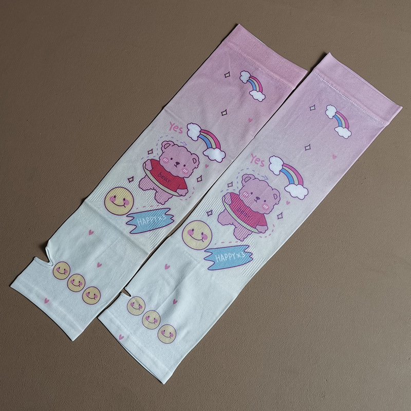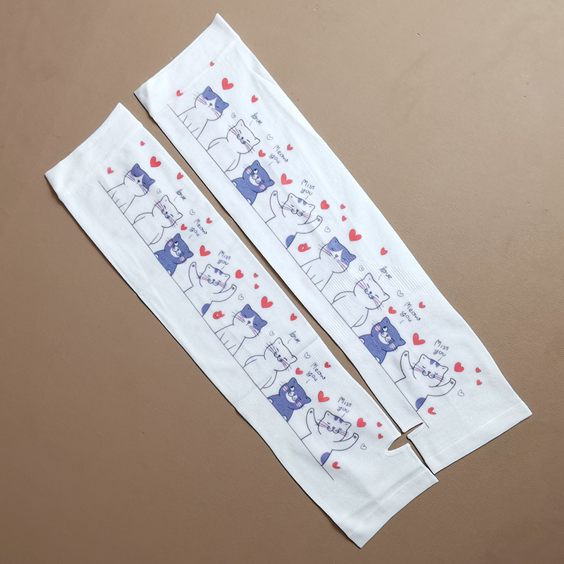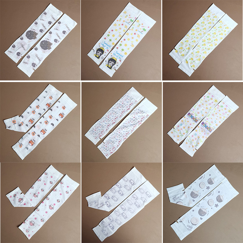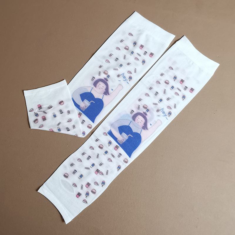 여름 시원한 통기성 태양 보호 오버 슬리브 여성 한국 스타일의 귀여운 인쇄 만화 연령 감소 팔 보호 UV 보호 얼음 소매 여성