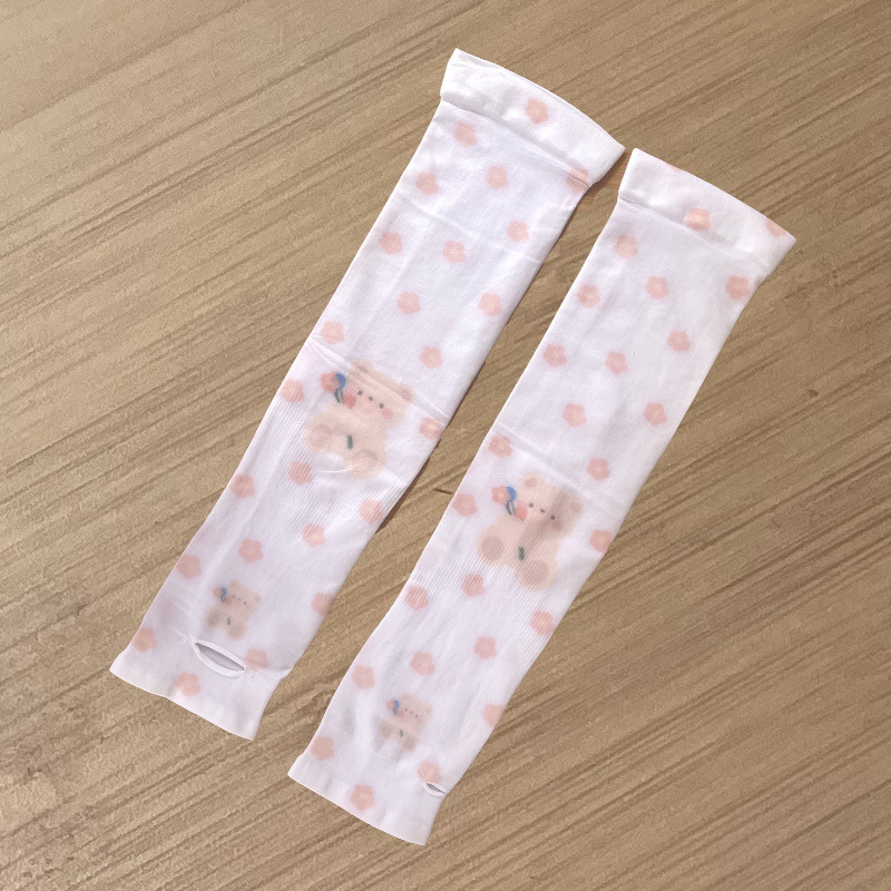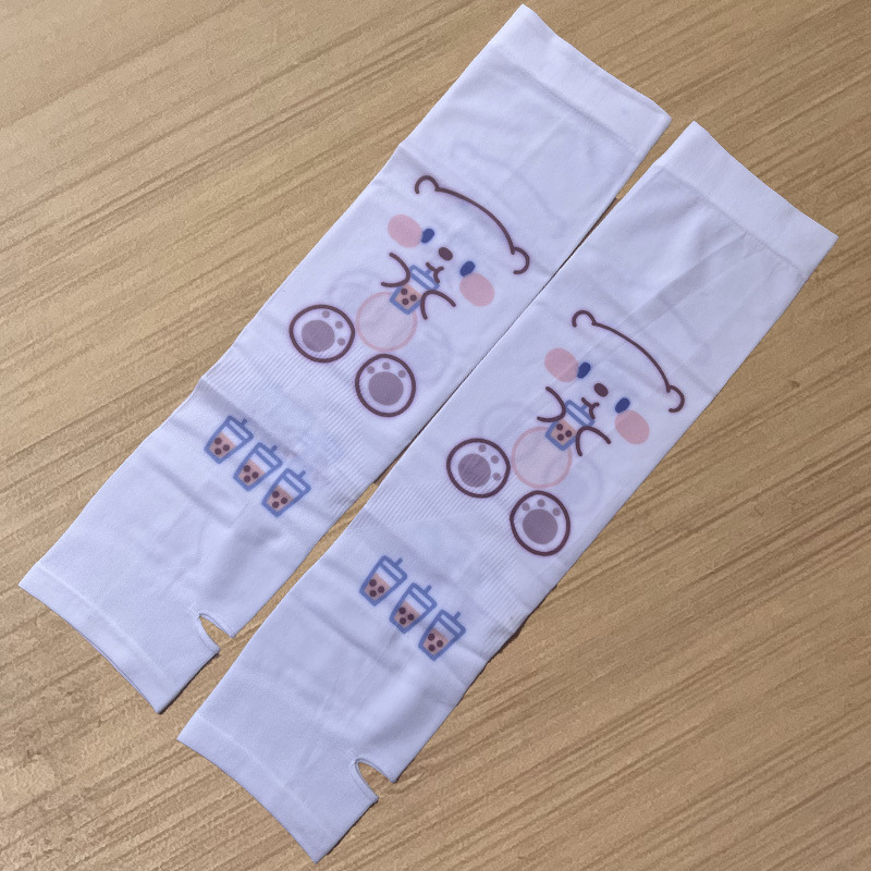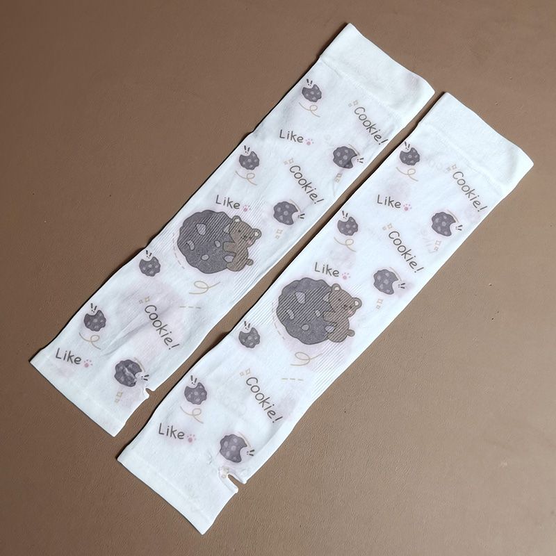 여름 시원한 통기성 태양 보호 오버 슬리브 여성 한국 스타일의 귀여운 인쇄 만화 연령 감소 팔 보호 UV 보호 얼음 소매 여성스토어 가기