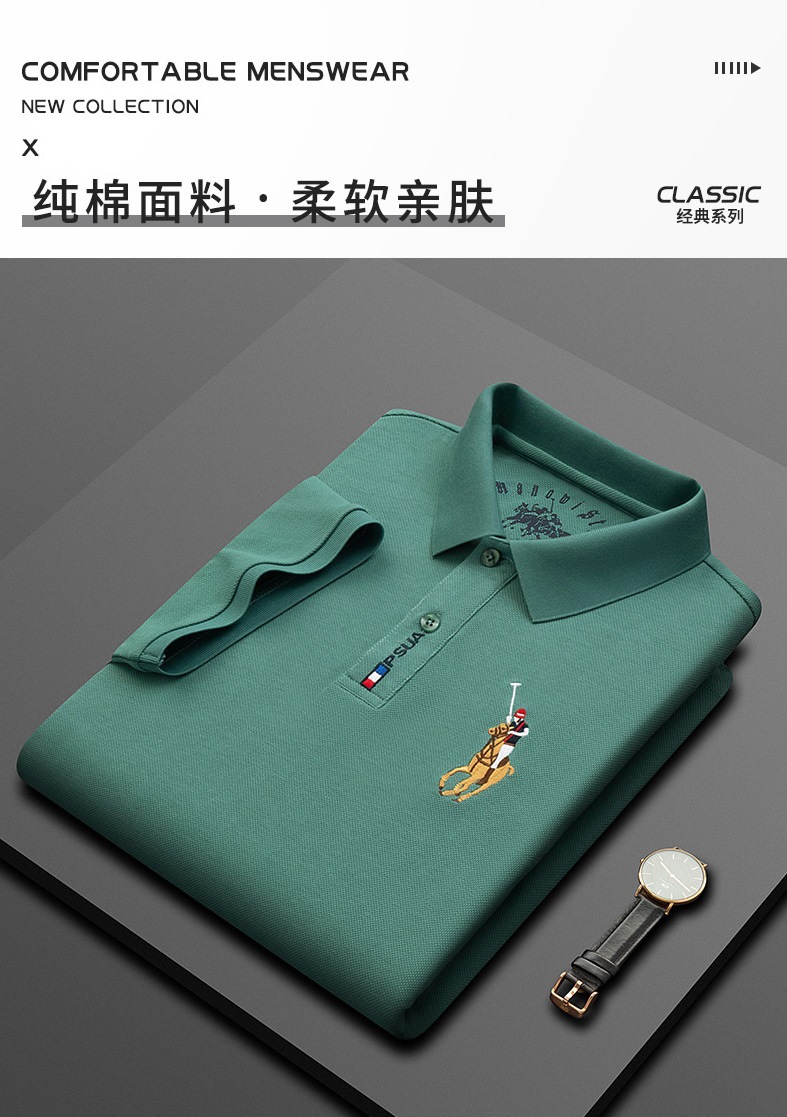 2024 새 여름 남자 반팔 폴로 셔츠 옷깃 티셔츠 고급 남성 자수 폴로 셔츠 최고 중년스토어 가기