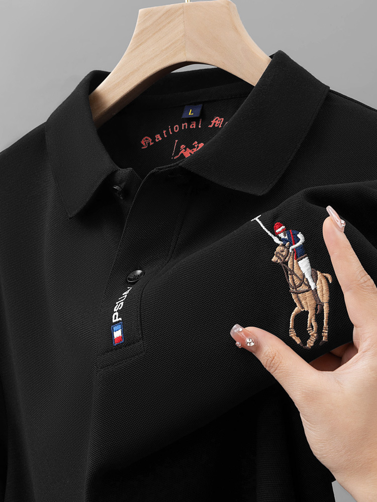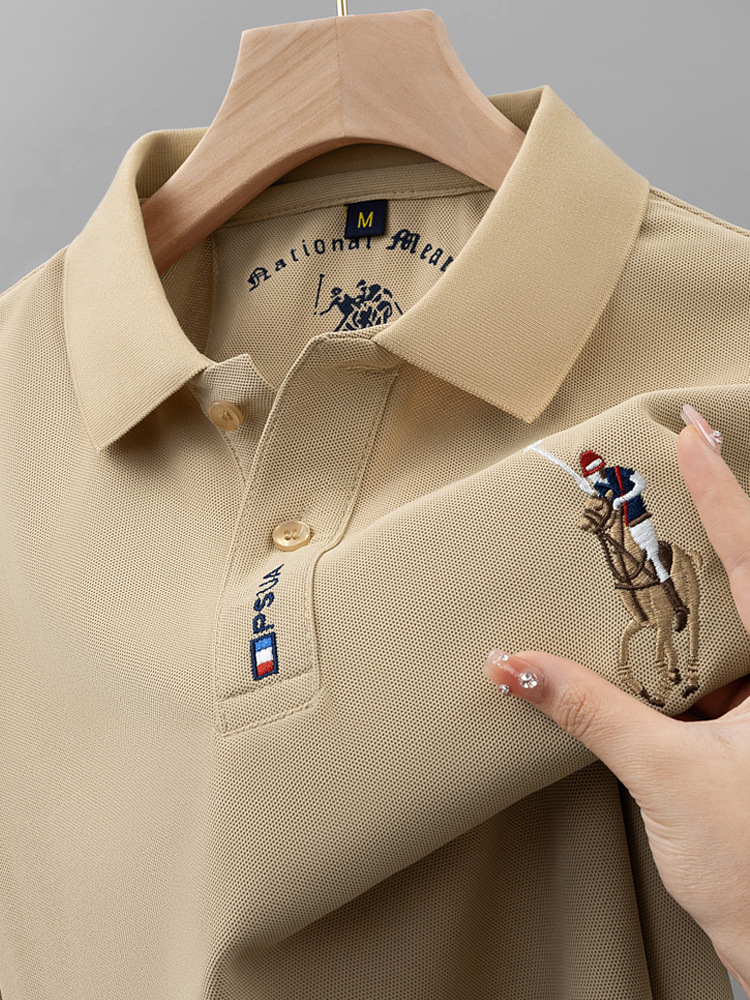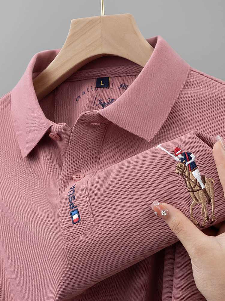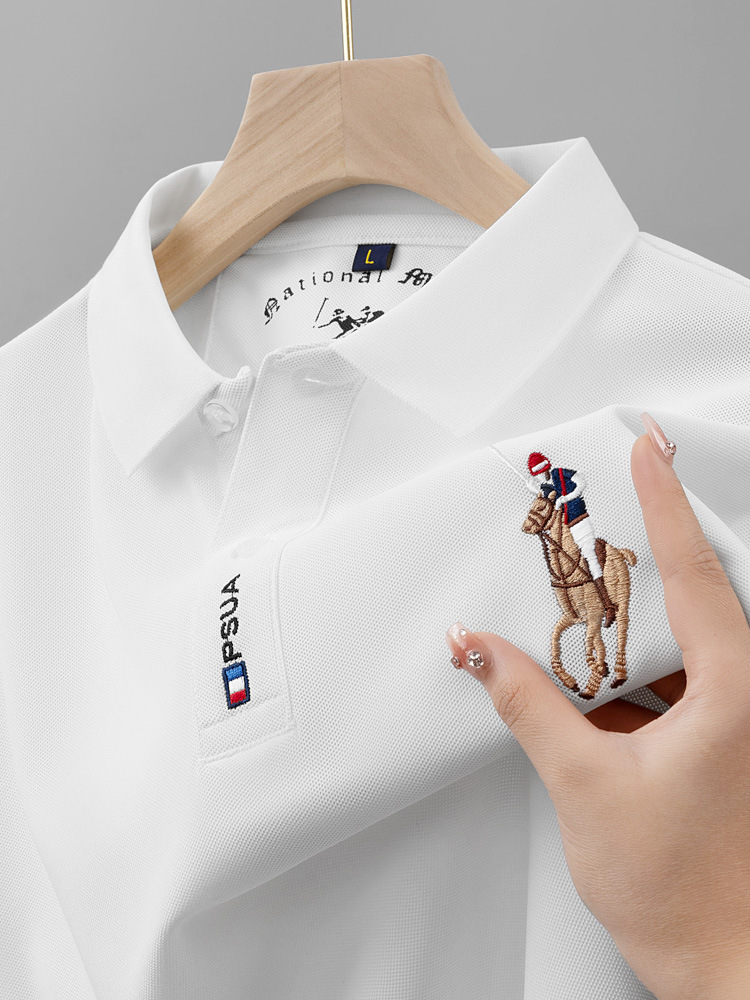 2024 새 여름 남자 반팔 폴로 셔츠 옷깃 티셔츠 고급 남성 자수 폴로 셔츠 최고 중년
