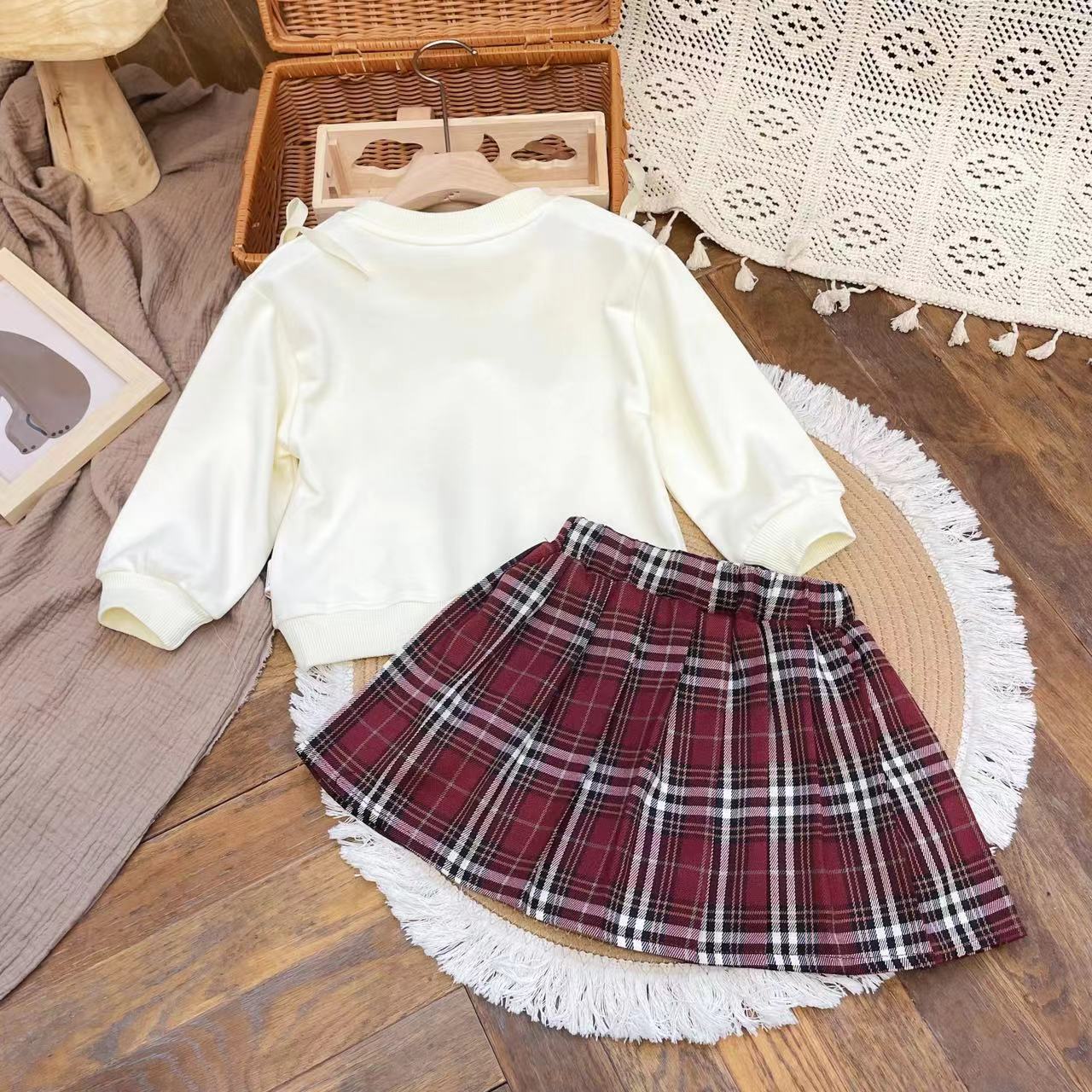 [재고] ZD24C006 봄 새로운 어린이 세트 여자 대학 스타일 투피스 스웨터 스커트