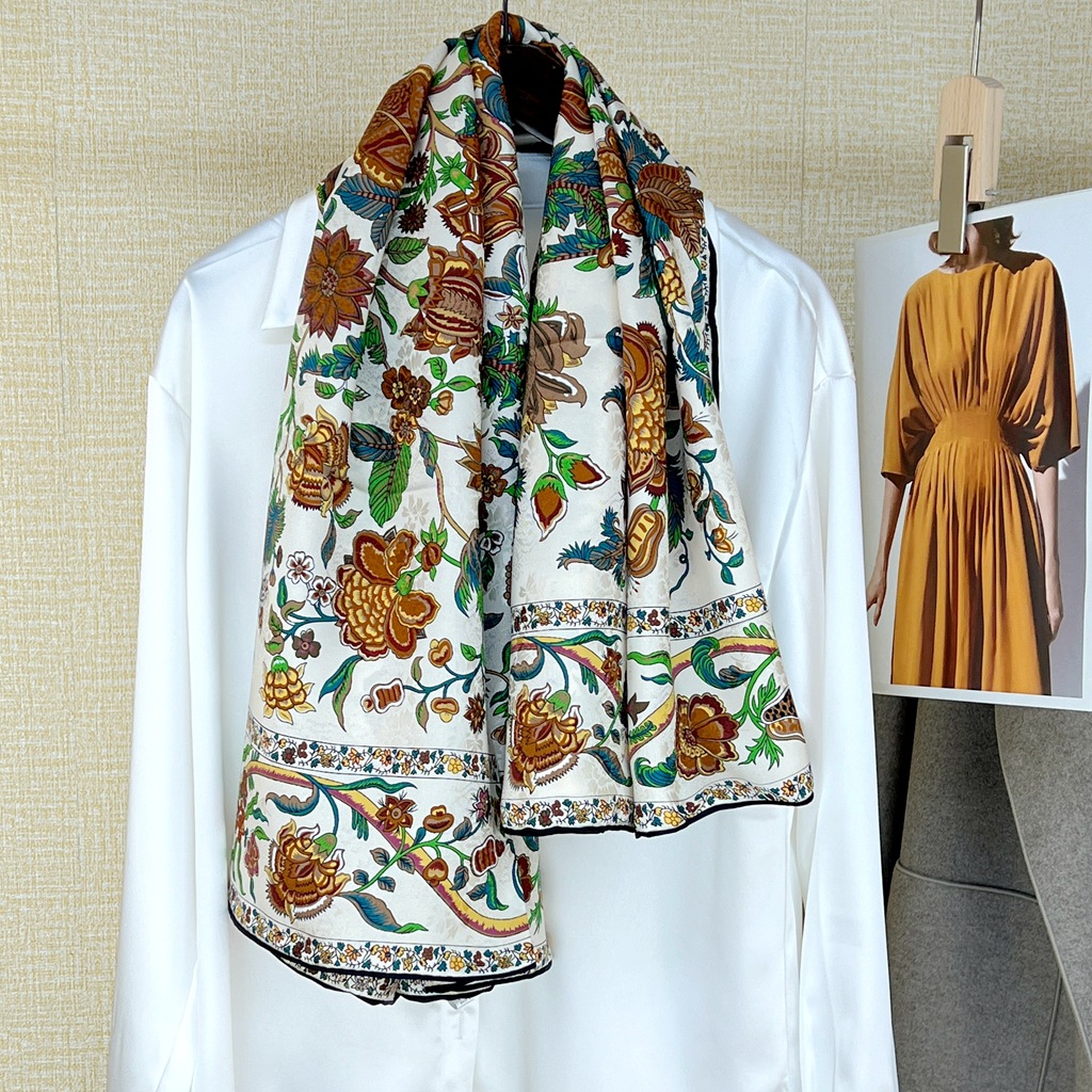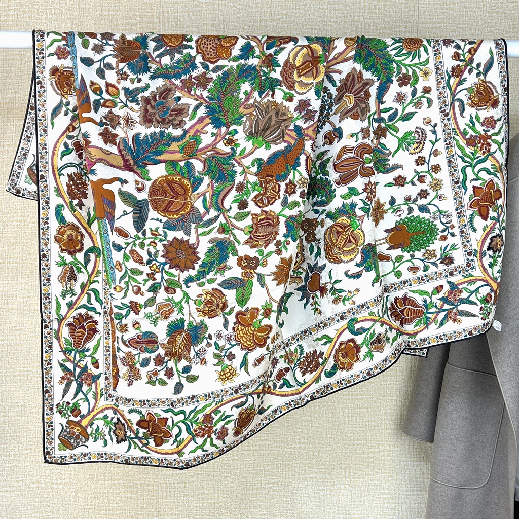 프랑스 스타일의 가벼운 고급 양면 다른 색상 공예 화재 나무 꽃 19 m 꽃 실크 큰 사각형 스카프 목도리 스카프스토어 가기