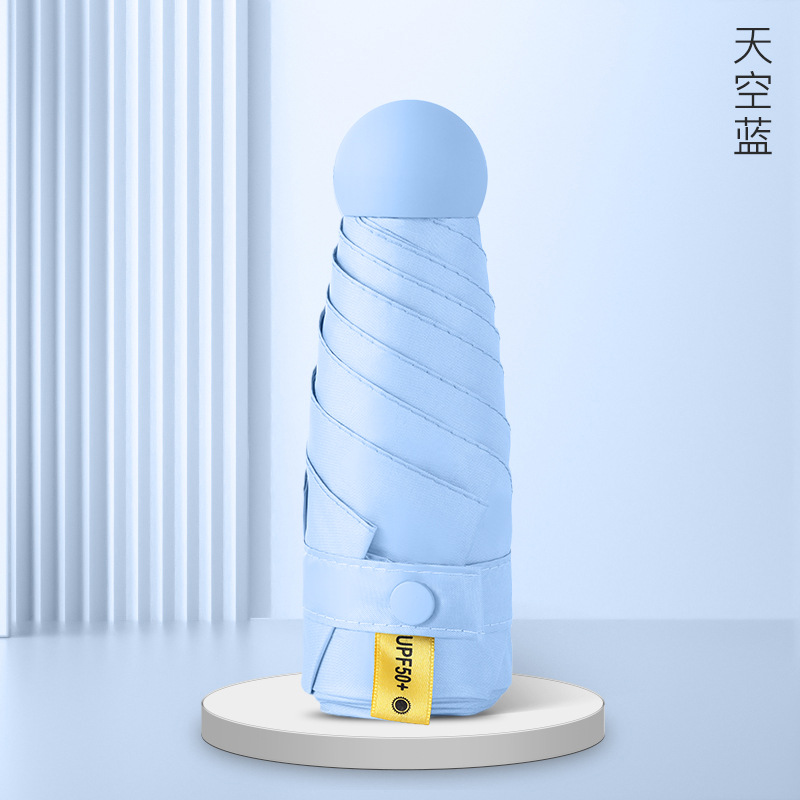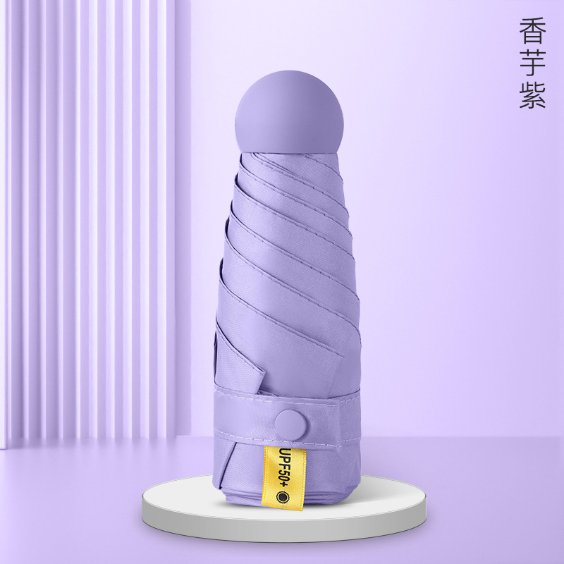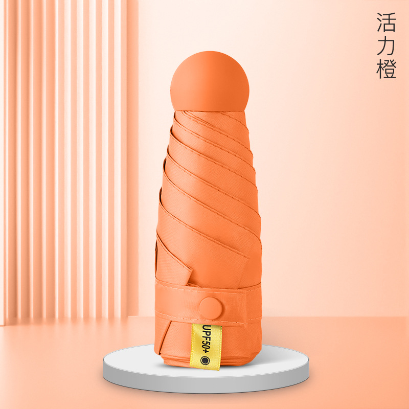 과일 우산 태양 우산 미니 포켓 태양 우산 블랙 접착제 태양 보호 자외선 차단 6 뼈 태양 보호 캡슐 우산 50%