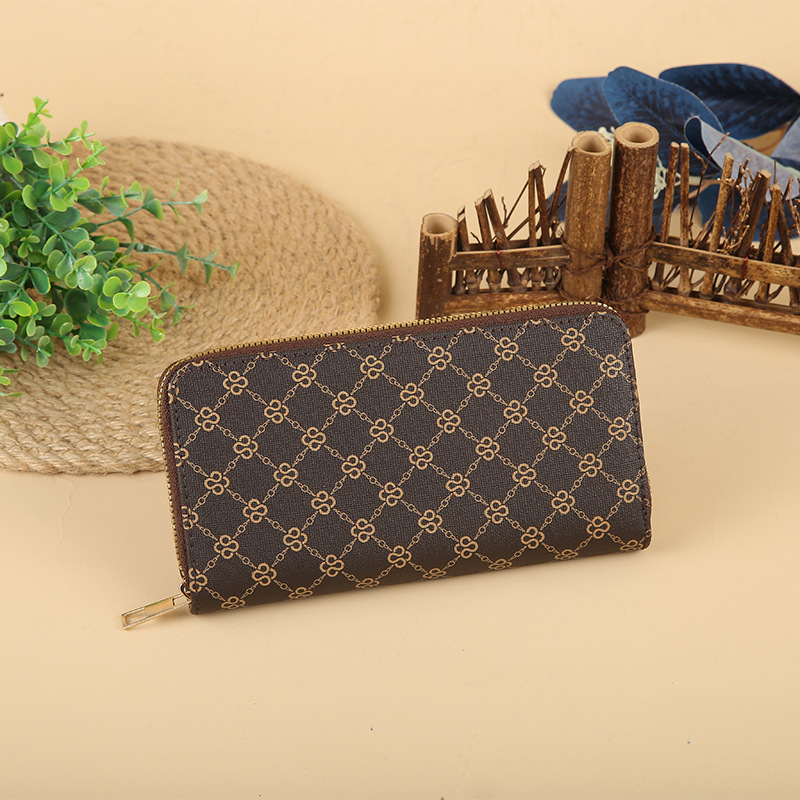 여성 한국 스타일의 간단한 지갑 긴 지퍼 지갑 가죽 인쇄 패션 동전 지갑 카드 홀더 핸드백