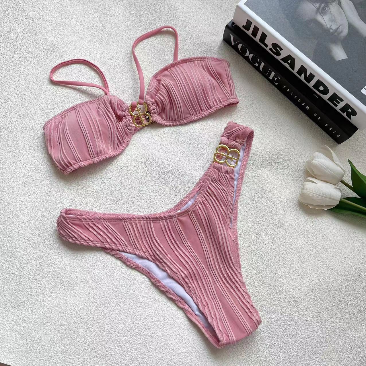 태국 비키니 금속 버클 섹시한 수출 제조업체 멀티 컬러 작은 가슴 유럽과 미국의 스타일 분할 수영복 여성 B 자형 버클스토어 가기