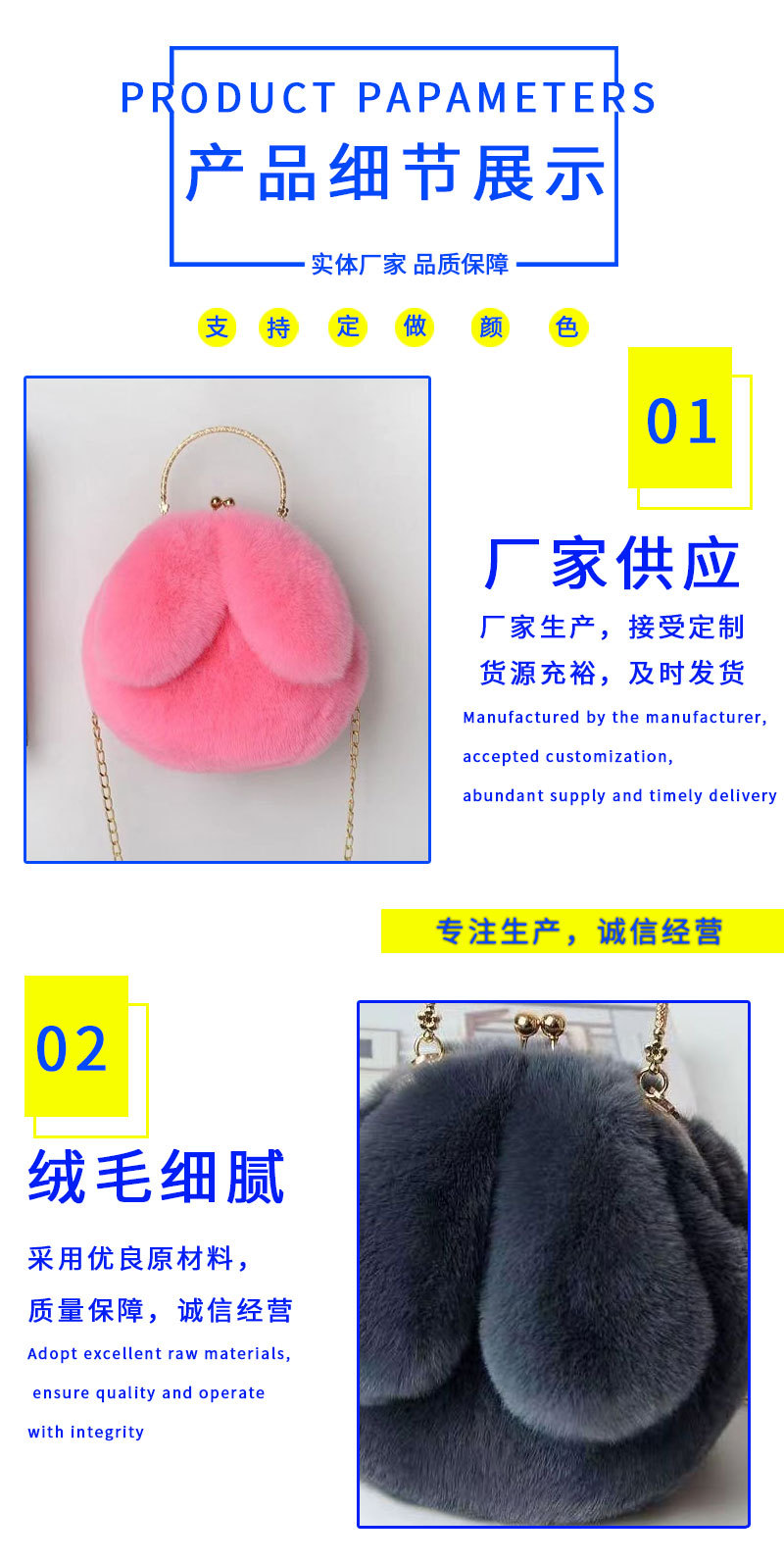 여성용 메신저 가방 휴대용 토끼 귀 가방 봉제 체인 작은 가방 도매 클립 가방 귀여운 토끼 귀 가방스토어 가기