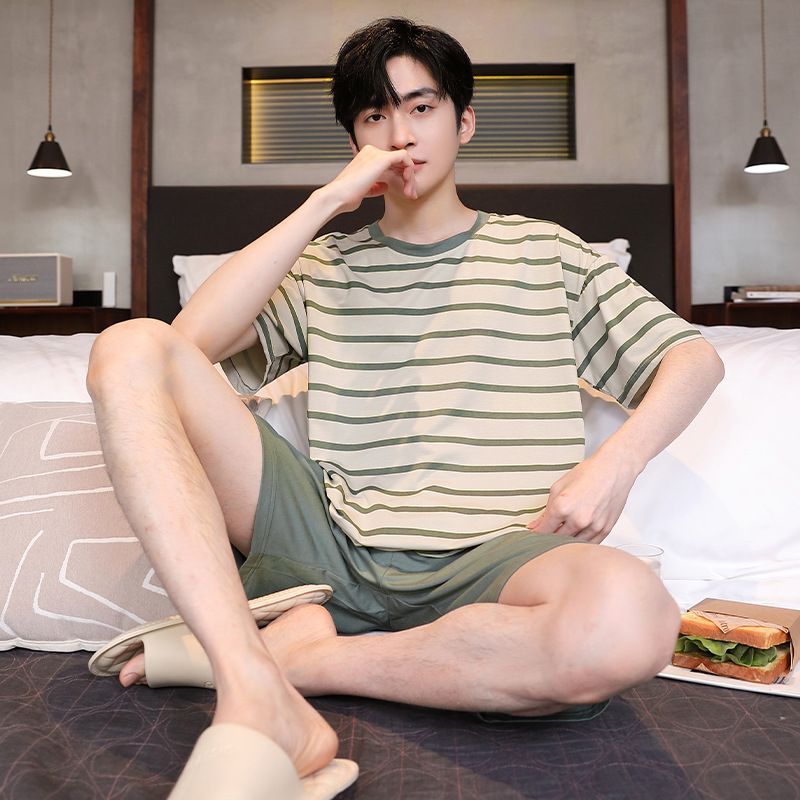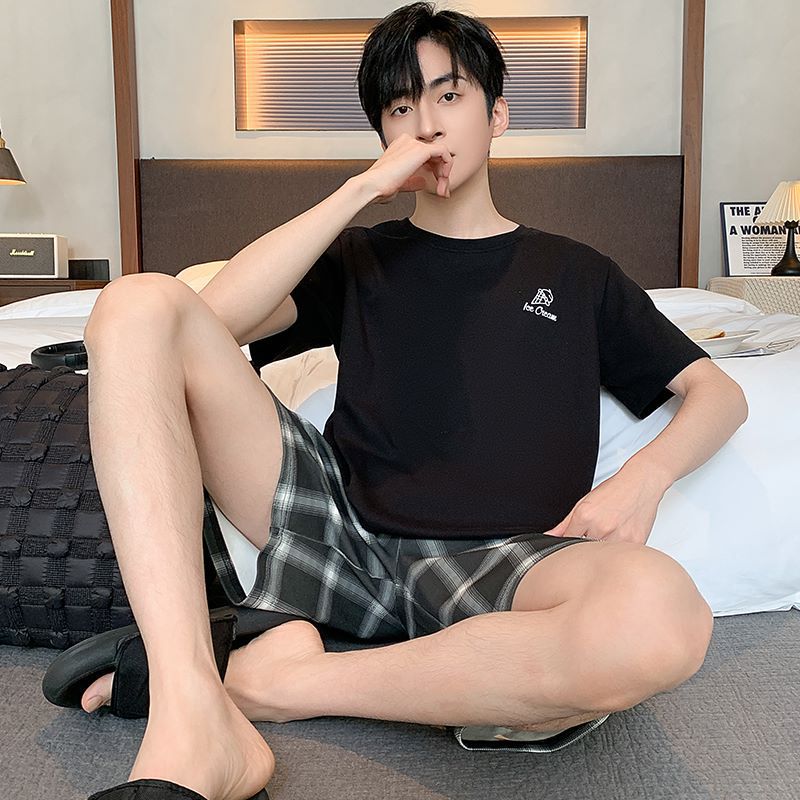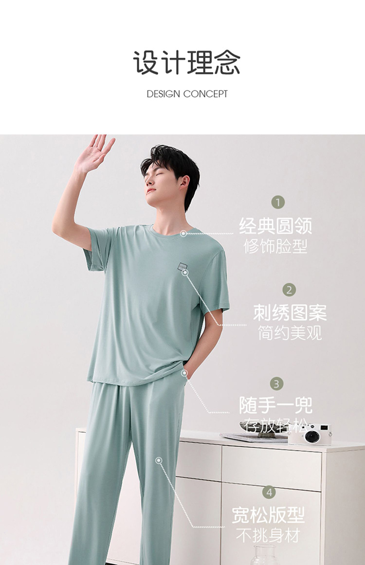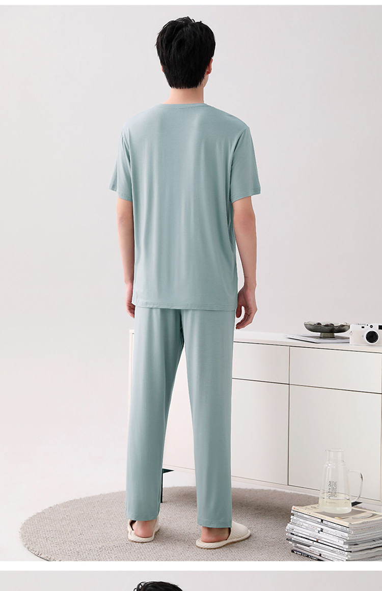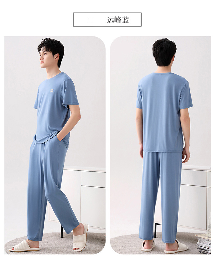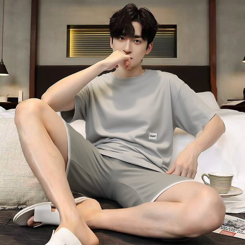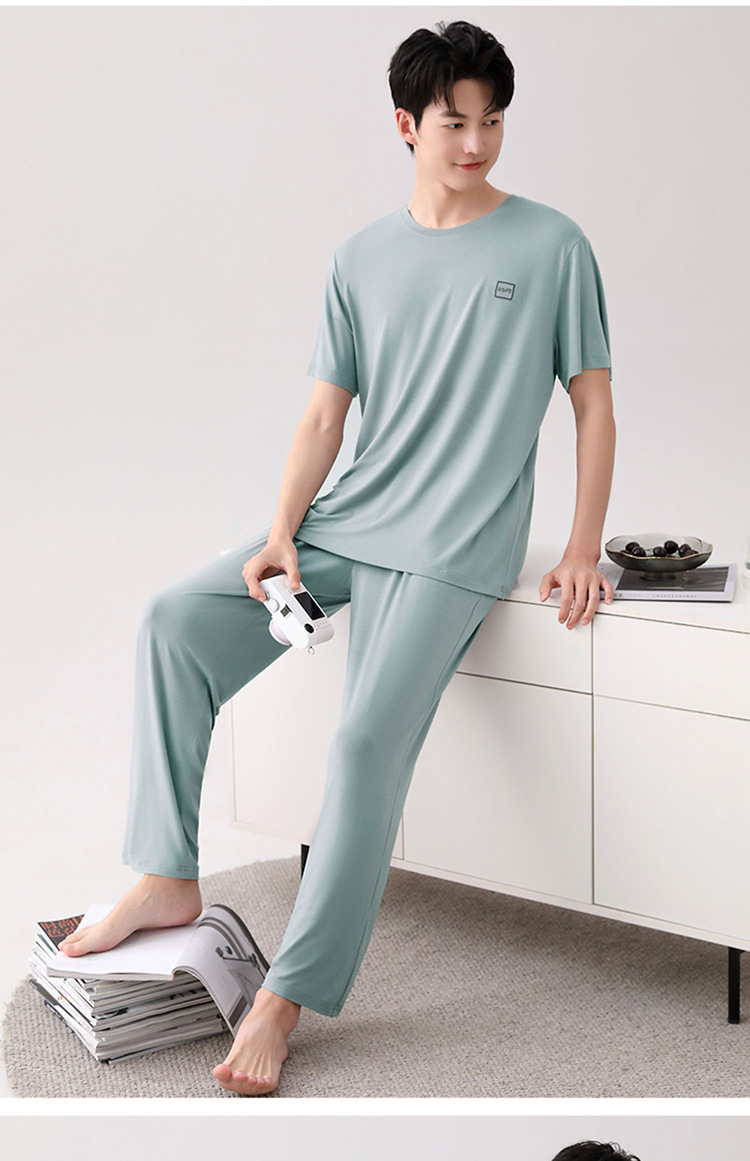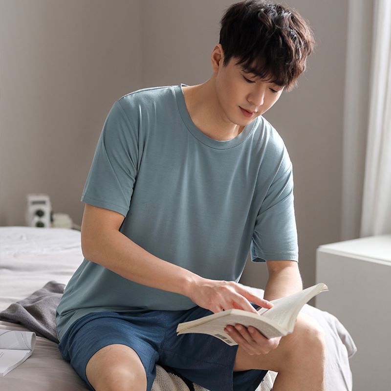 모달 파자마 남자 여름 얇은 반팔 바지 아이스 실크 홈 착용 여름 느슨한 플러스 사이즈 세트스토어 가기