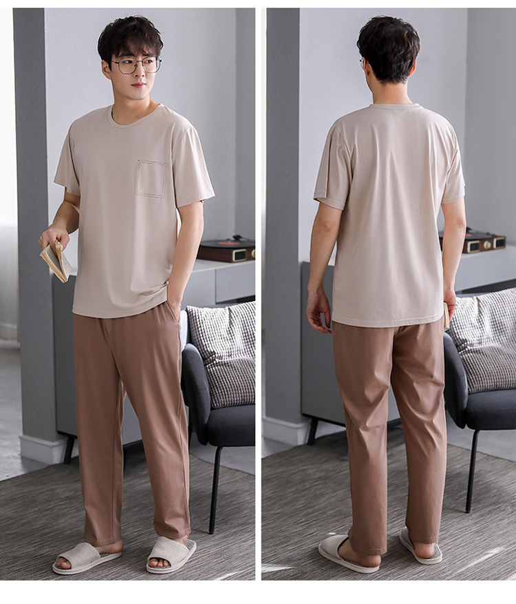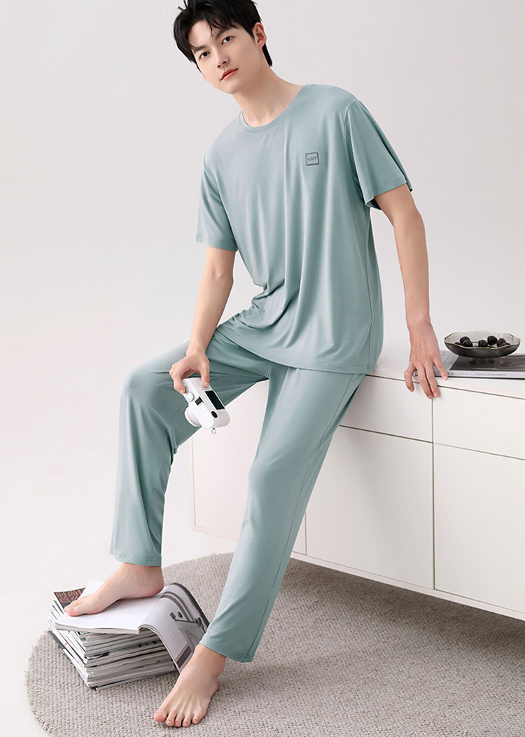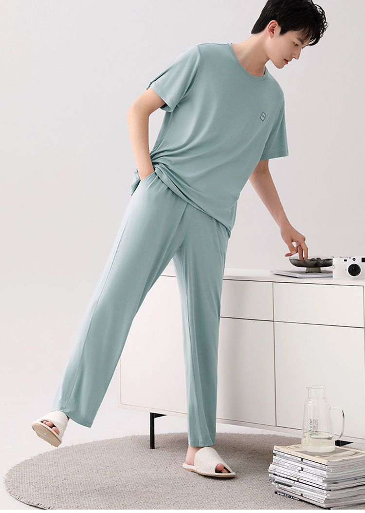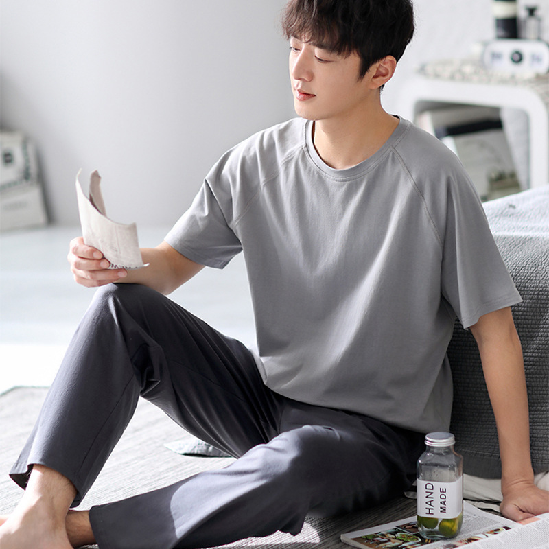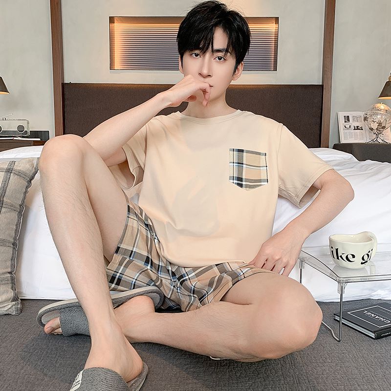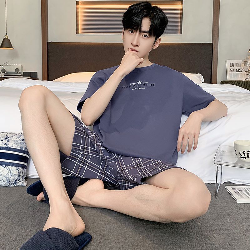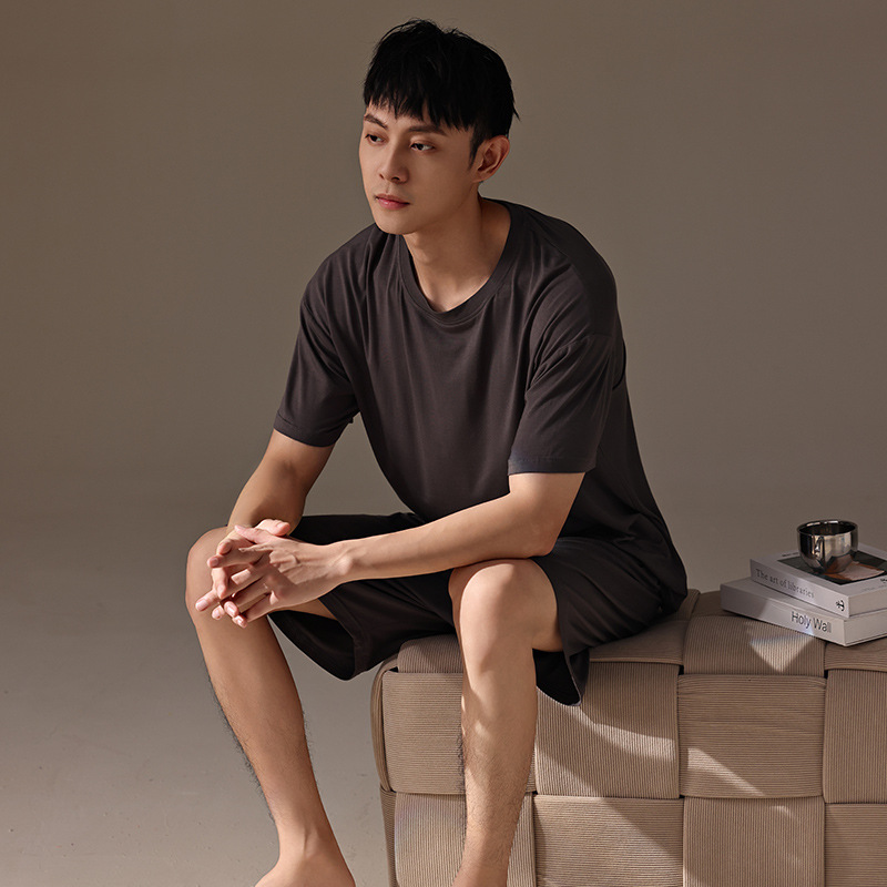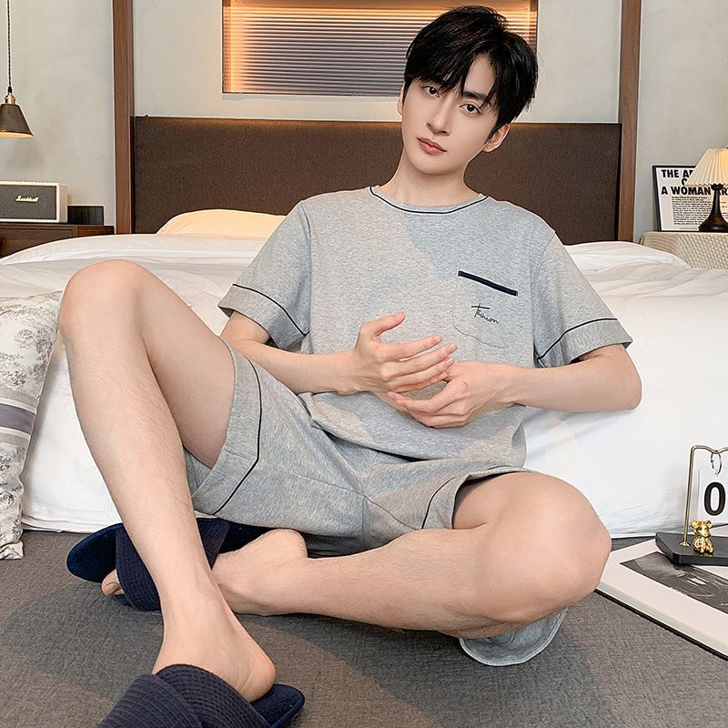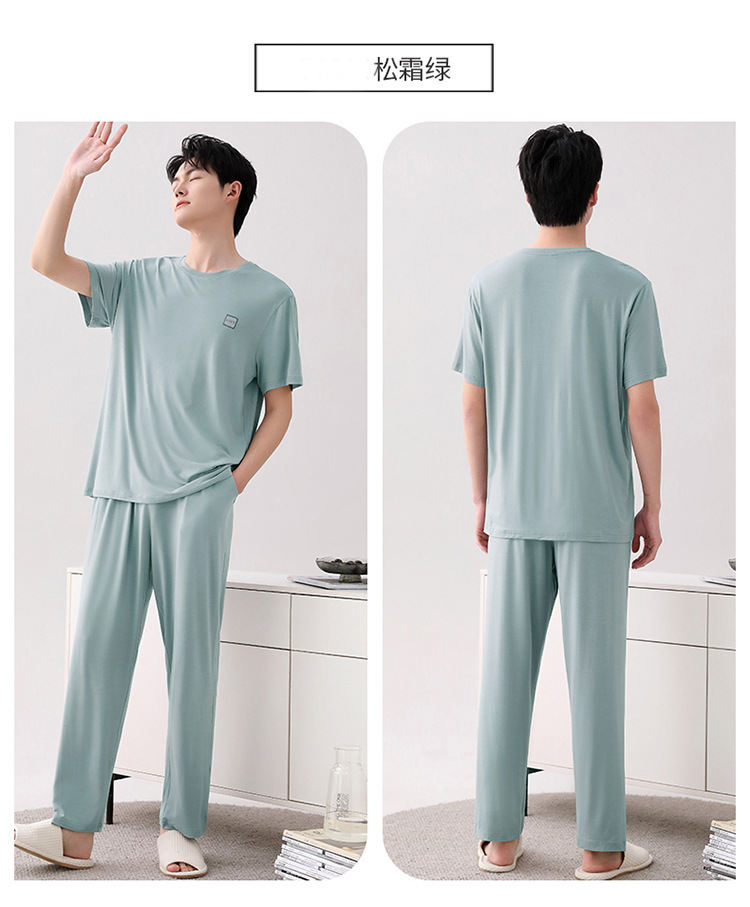 모달 파자마 남자 여름 얇은 반팔 바지 아이스 실크 홈 착용 여름 느슨한 플러스 사이즈 세트스토어 가기