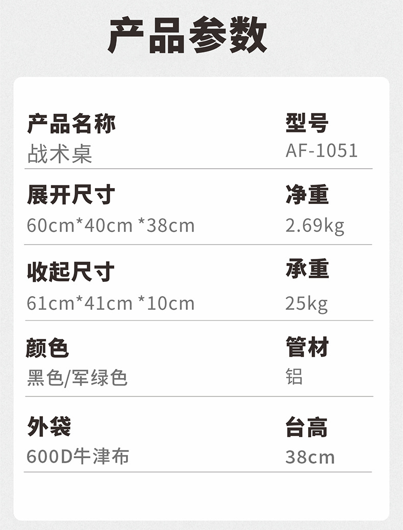 • 카키 봄과 가을 전술 테이블 AF-1051-BO