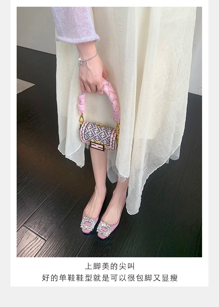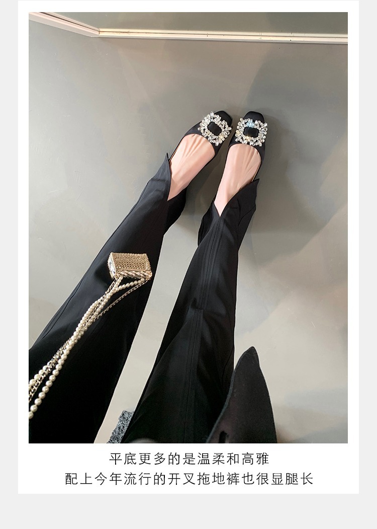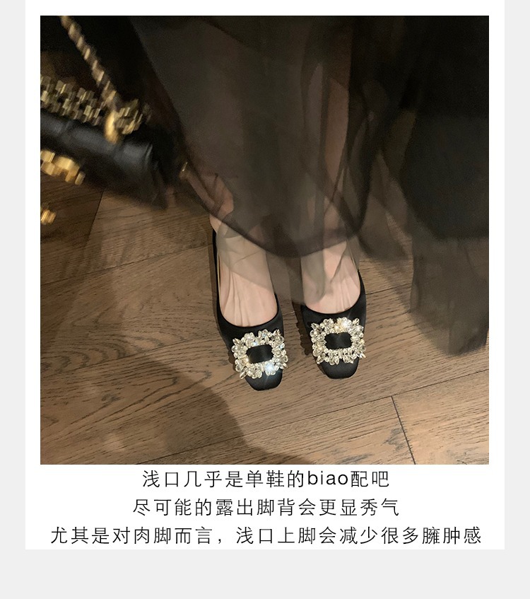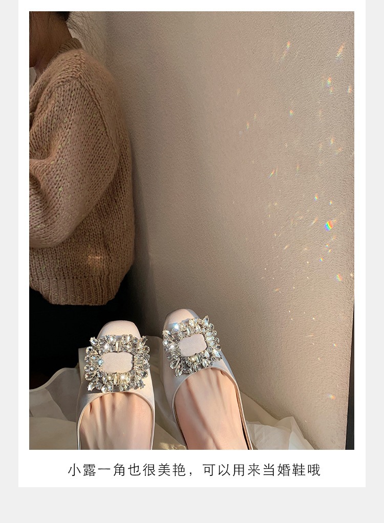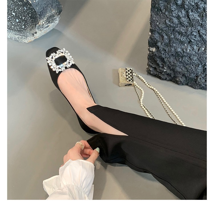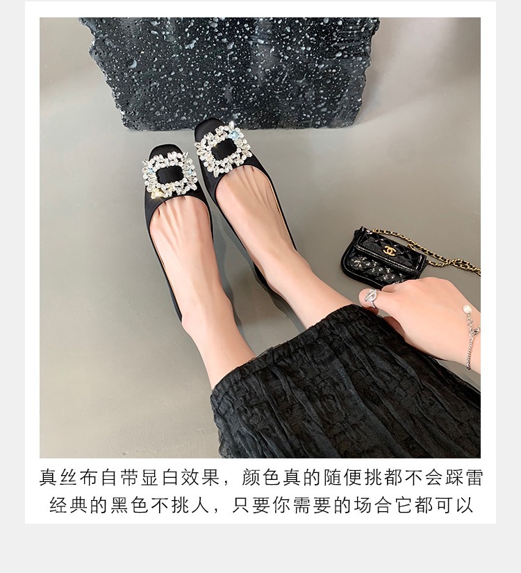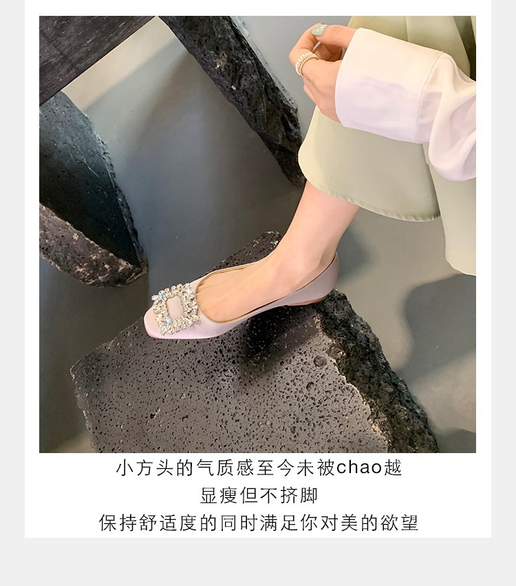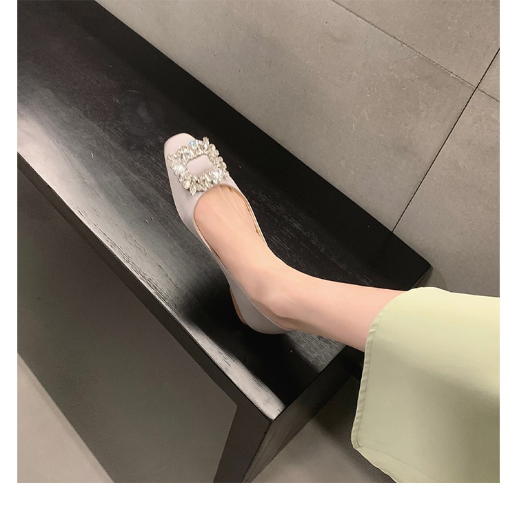 홍콩 라인스톤 스퀘어 버클 플랫 슈즈 얕은 입 여성용 정품 가죽 봄 새로운 우아한 고급 그레이 올 매치 연회 웨딩 슈즈스토어 가기