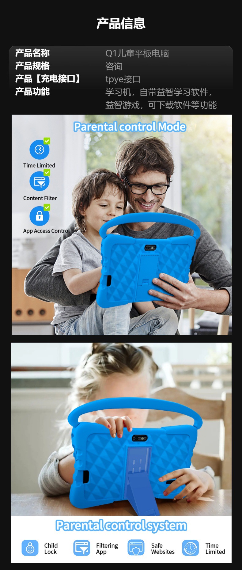 7inch 어린이용 태블릿 스마트 조기 교육 기계 안드로이드 컴퓨터 과외 기계 해외 공장 도매 노트북 터치스크린