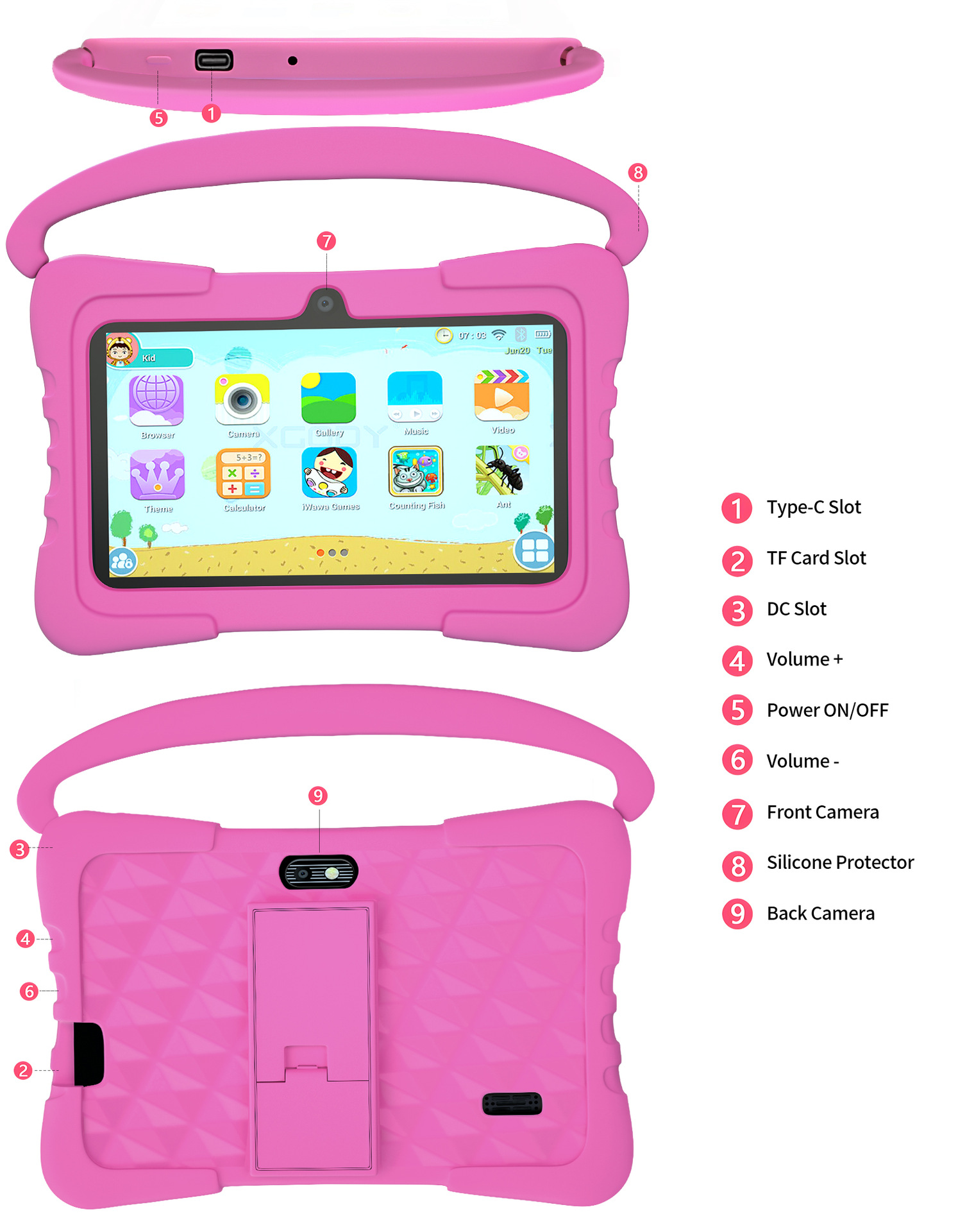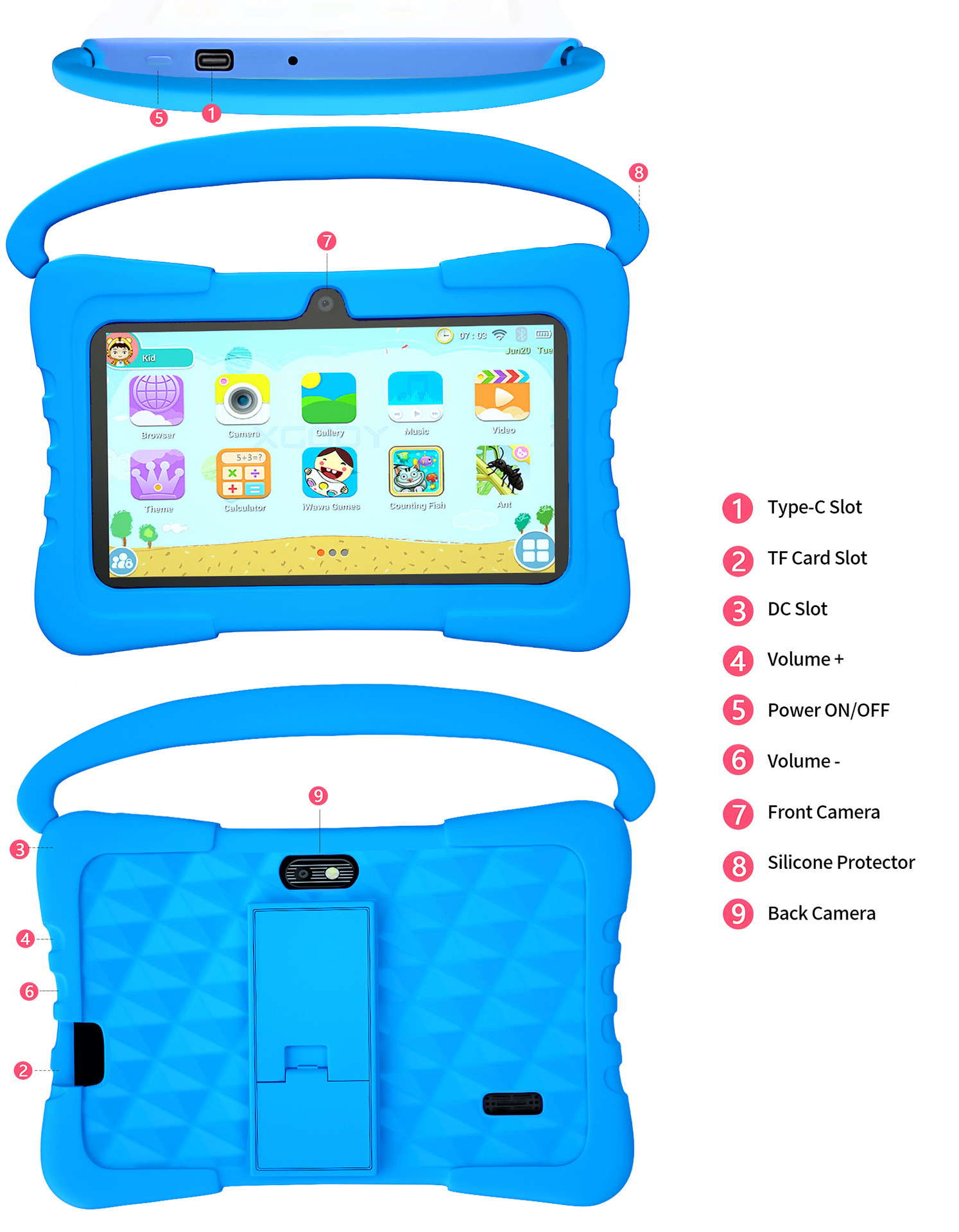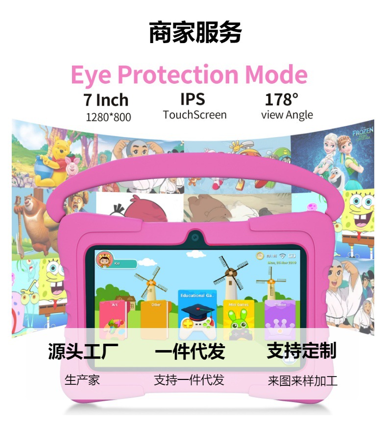 7inch 어린이용 태블릿 스마트 조기 교육 기계 안드로이드 컴퓨터 과외 기계 해외 공장 도매 노트북 터치스크린스토어 가기