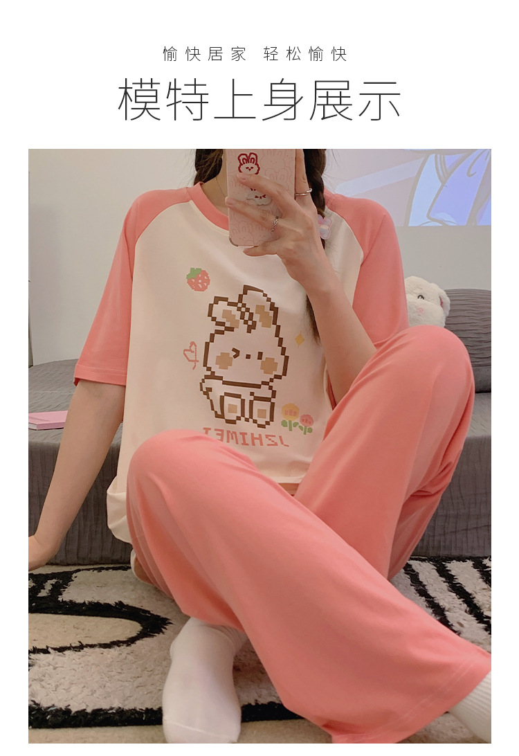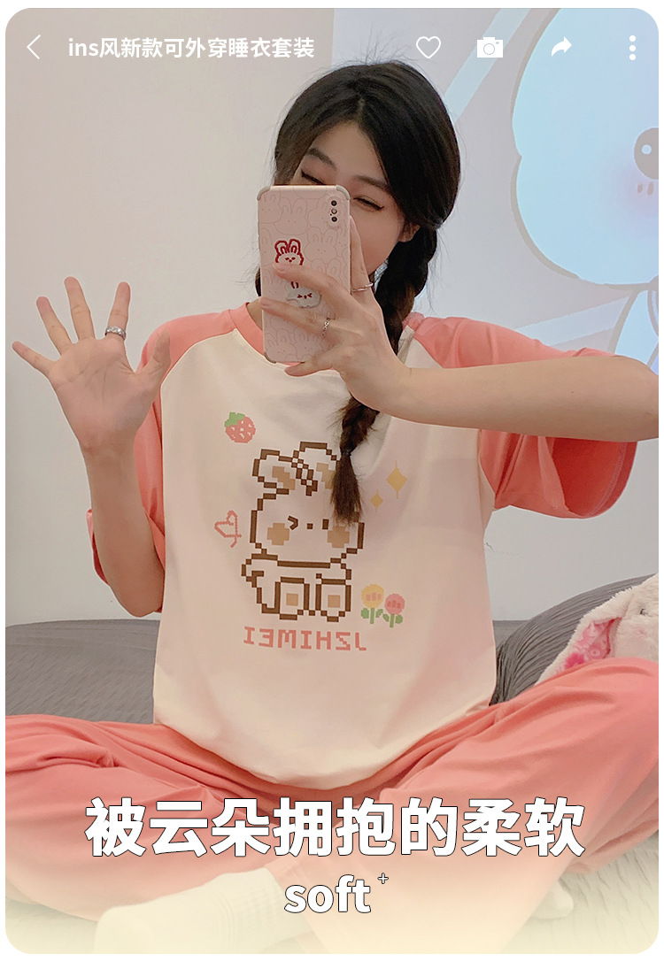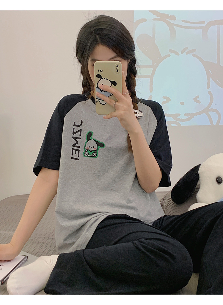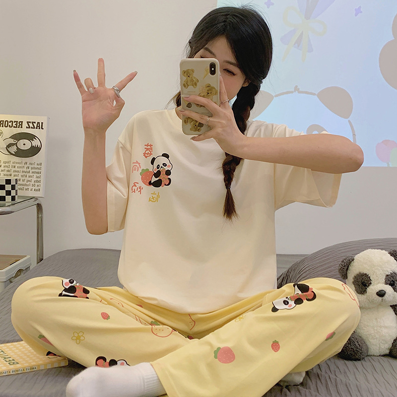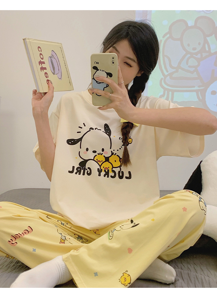 2024 새 잠옷 여성 여름 반팔 바지 만화 소녀 중학생 18 세 고등학생 가정복 세트스토어 가기