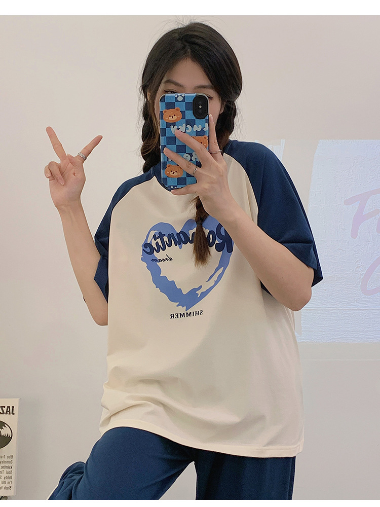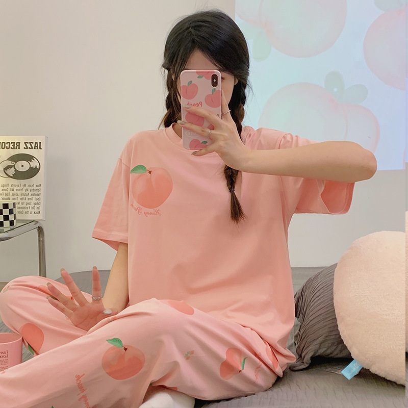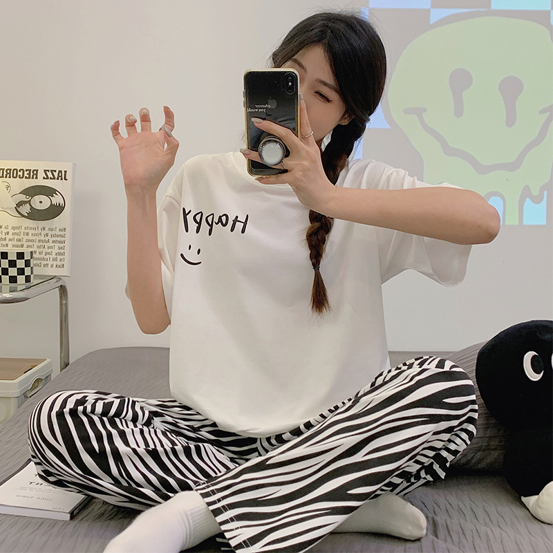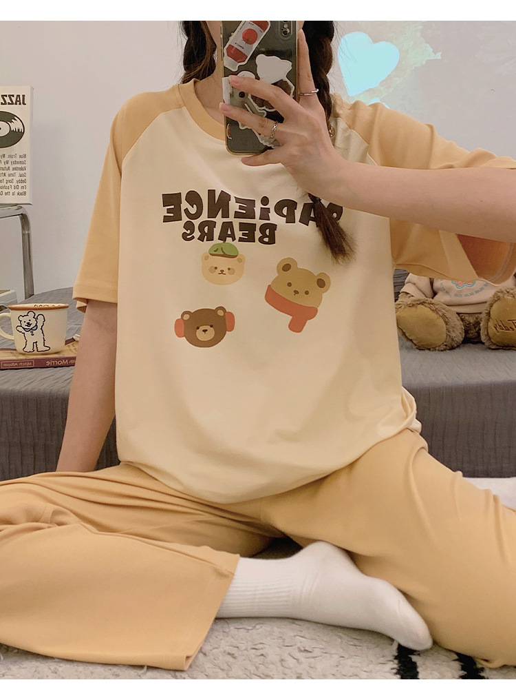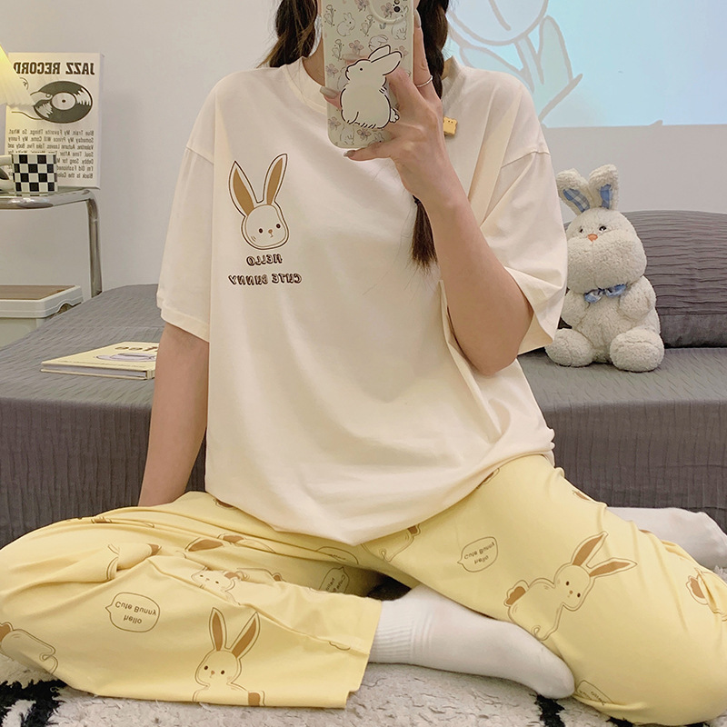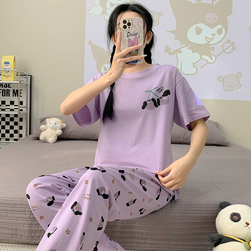 2024 새 잠옷 여성 여름 반팔 바지 만화 소녀 중학생 18 세 고등학생 가정복 세트스토어 가기