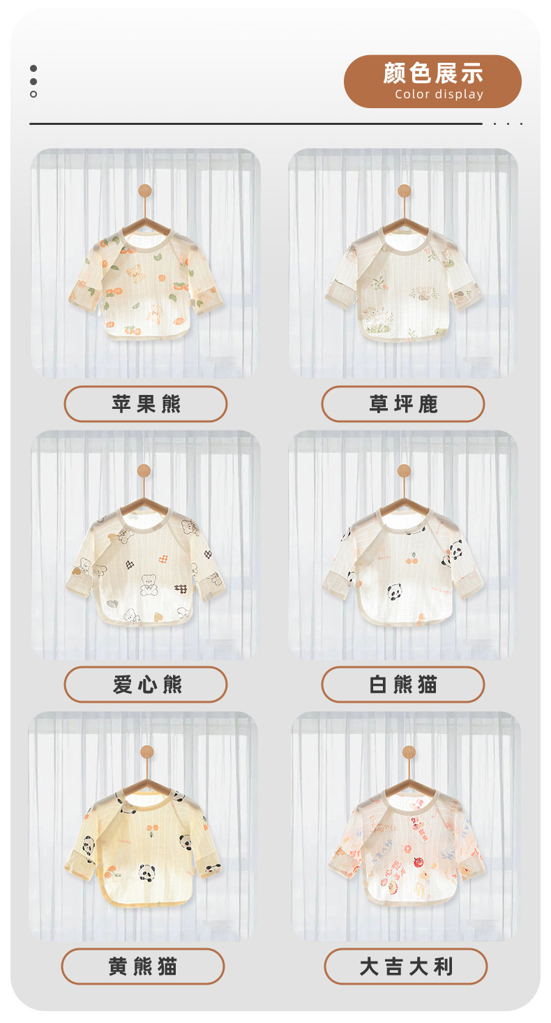 Y2301 신생아 아기 옷 여름 얇은 순면 신생아 아기 탑 배꼽 보호 아기 스님 옷 반 뒷옷스토어 가기