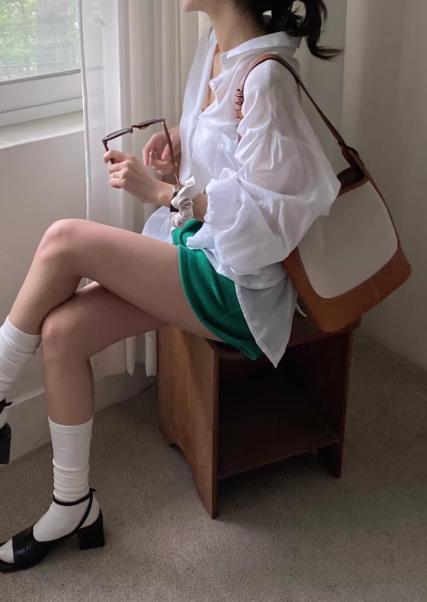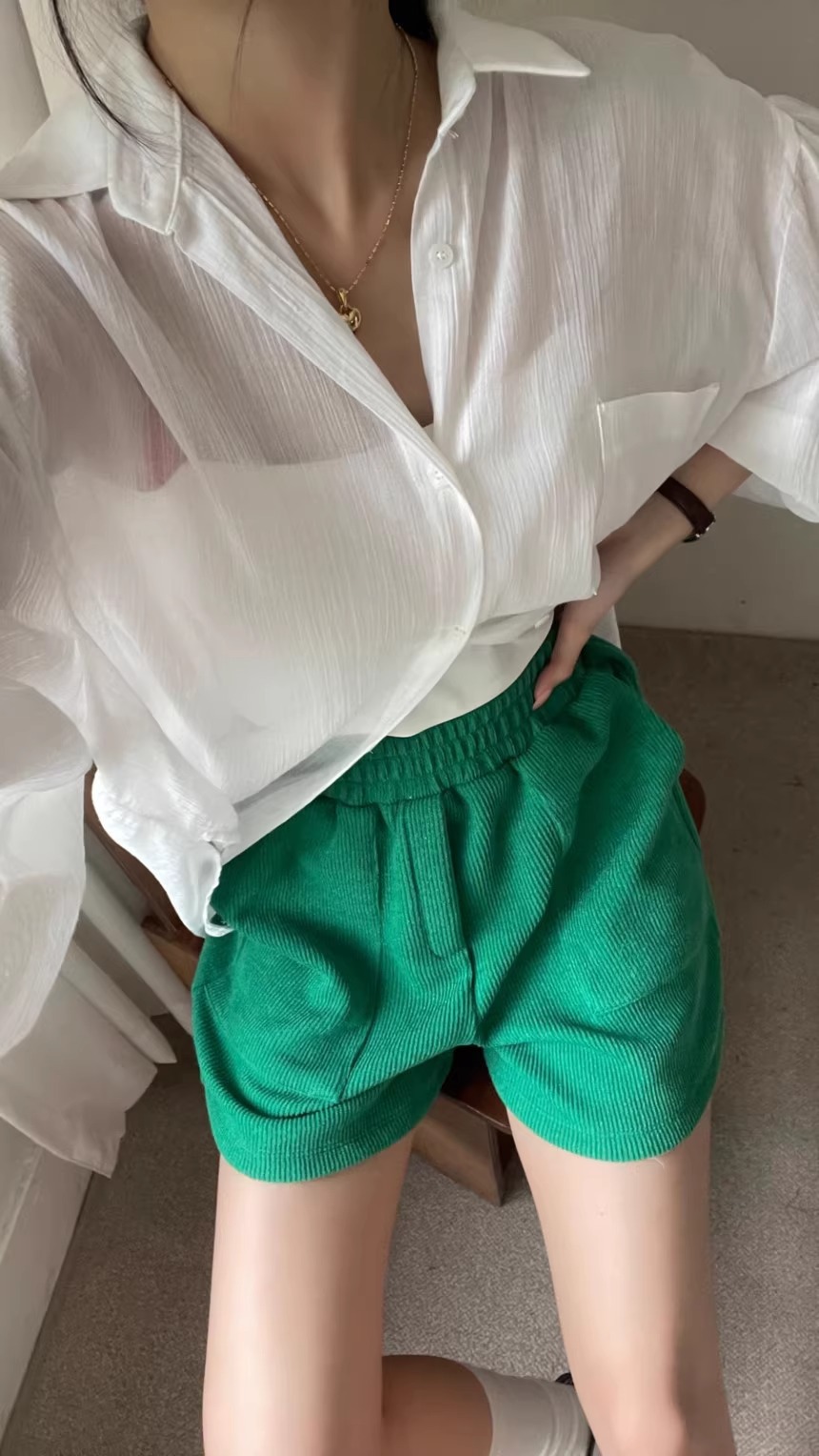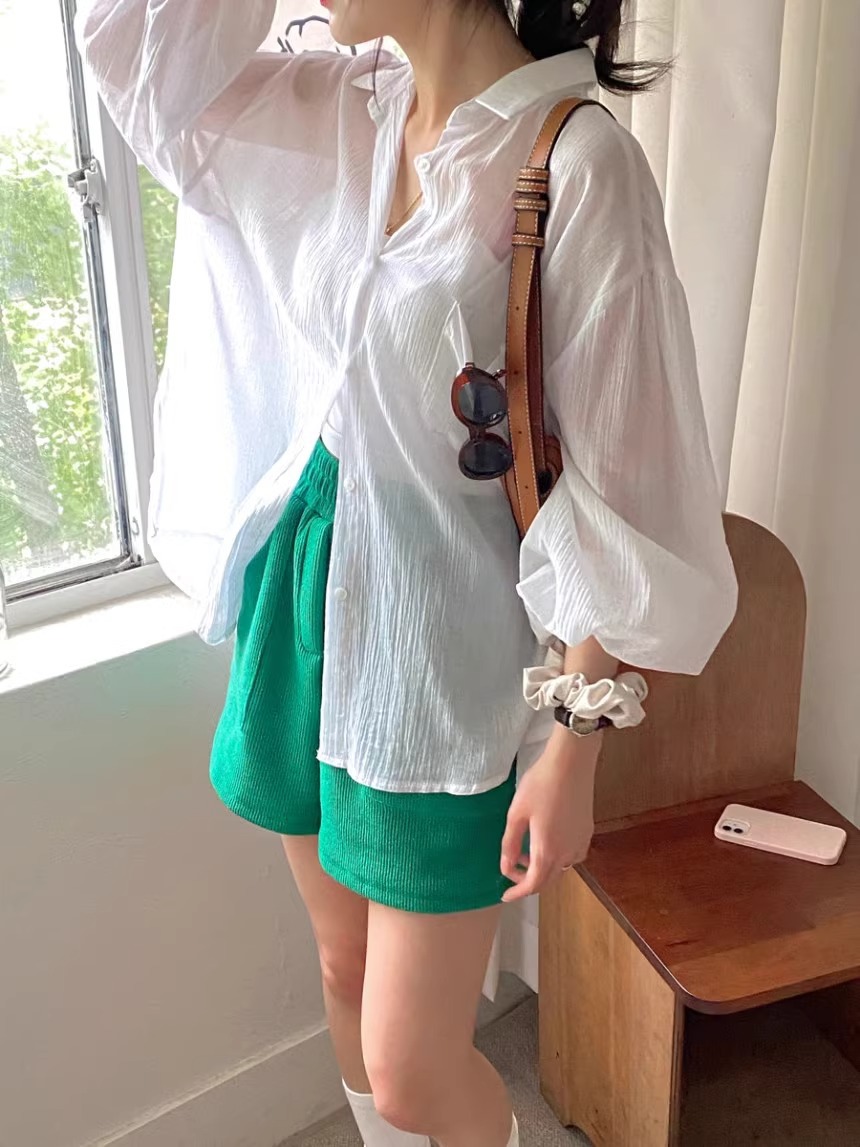 한국 세련된 봄 프랑스 기질 옷깃 시계 다시 분할 디자인 느낌 마이크로 투명 얇은 자외선 차단제 셔츠스토어 가기
