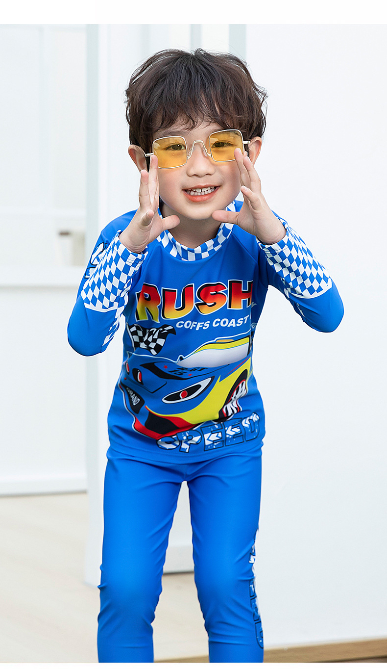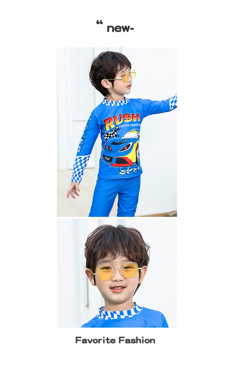 어린이 수영복 소년 2024 새로운 만화 귀여운 바지 분할 태양 보호 수영복 소년 온천 수영