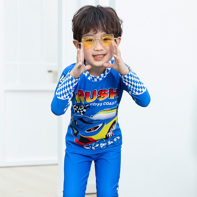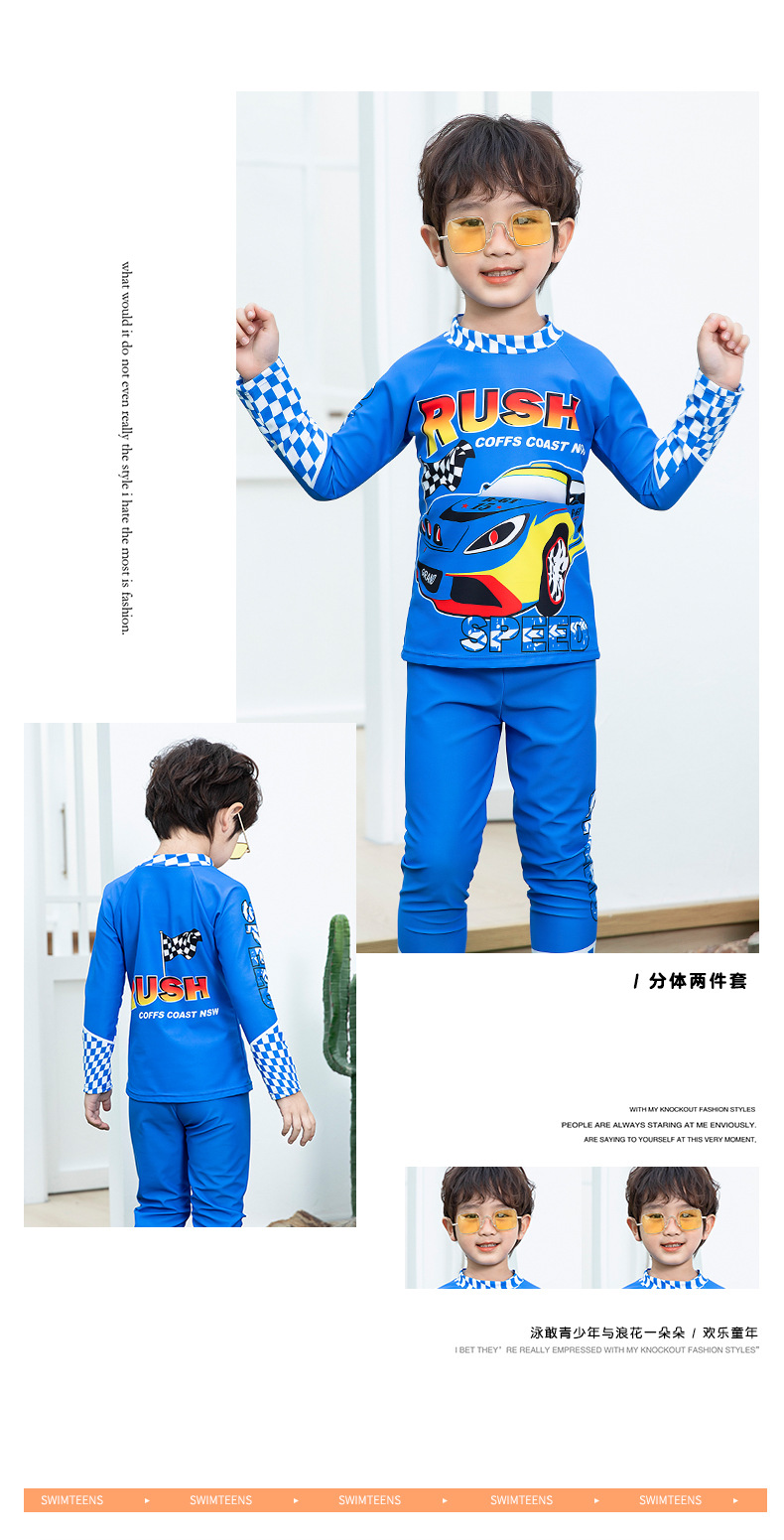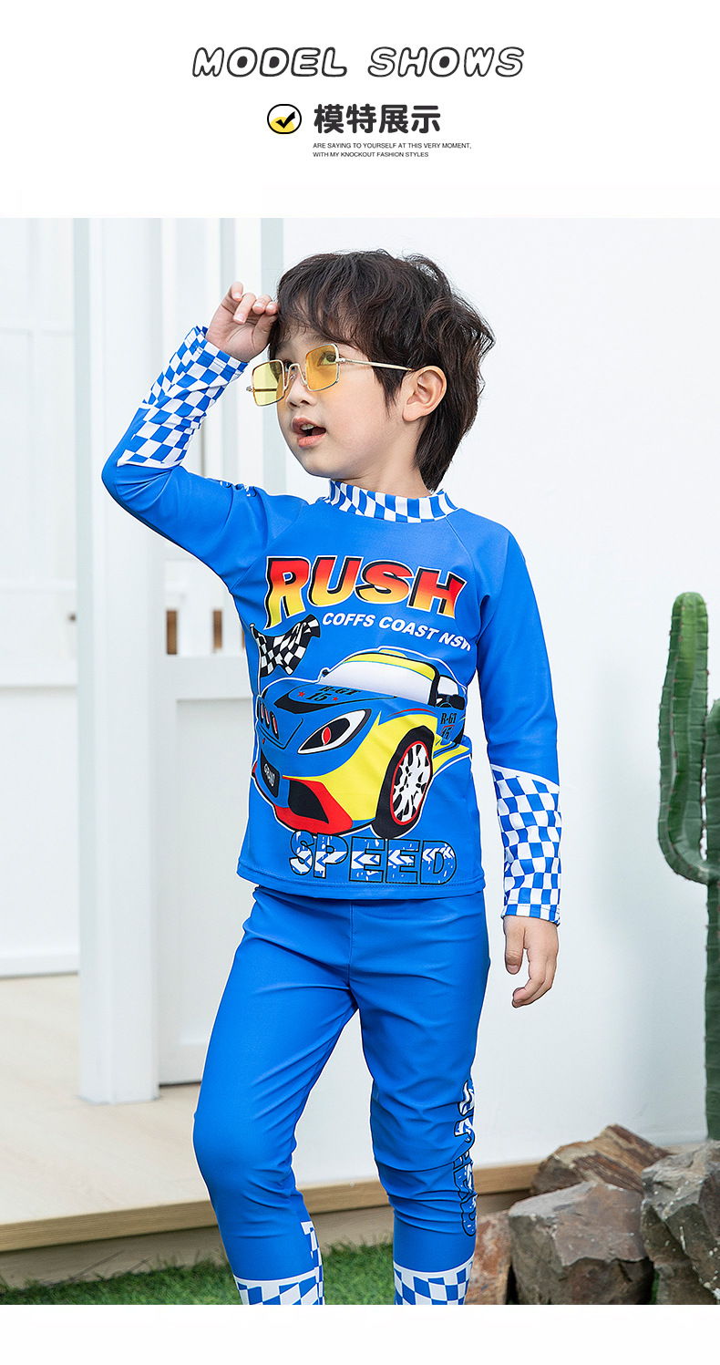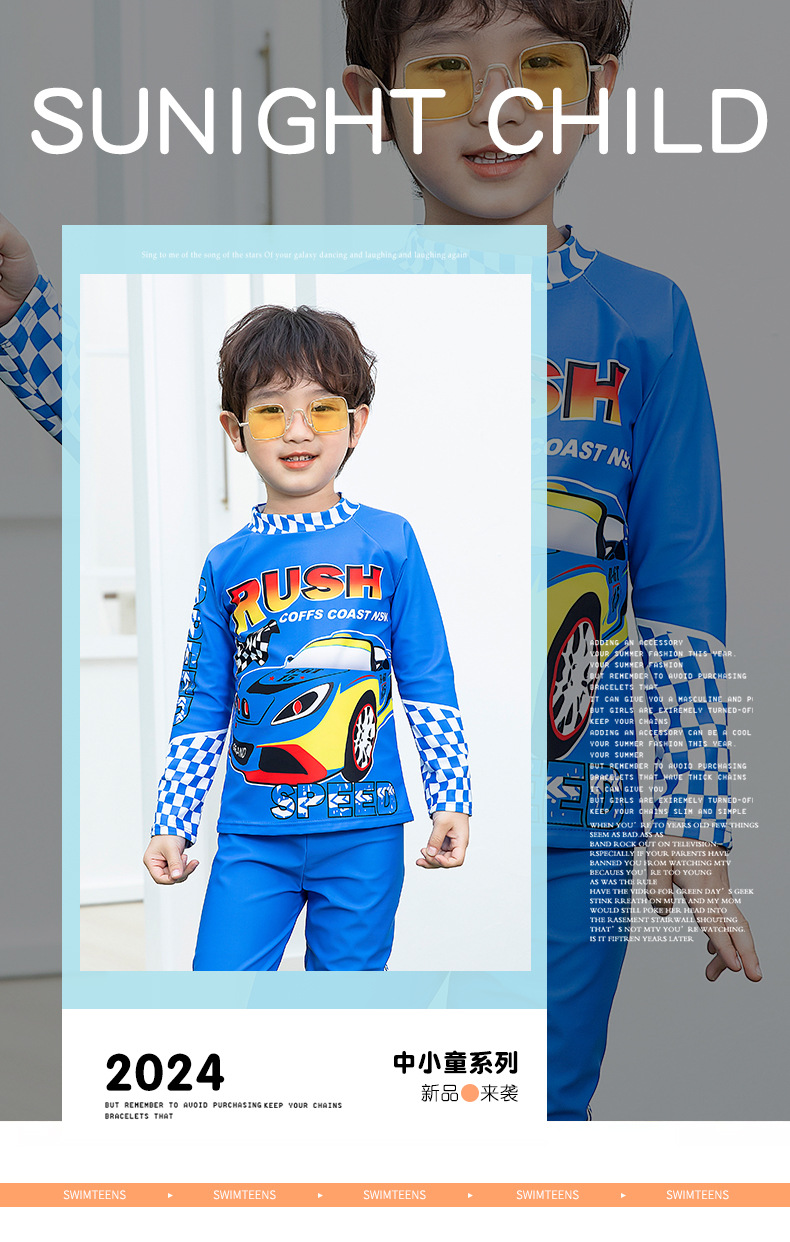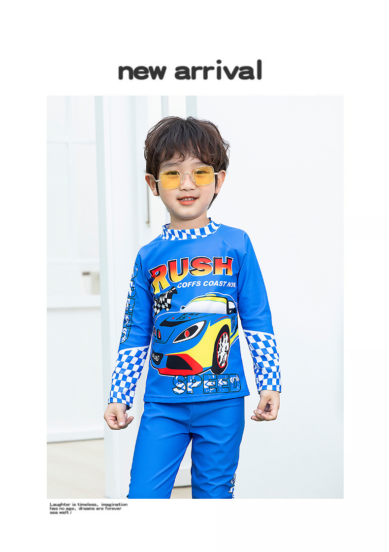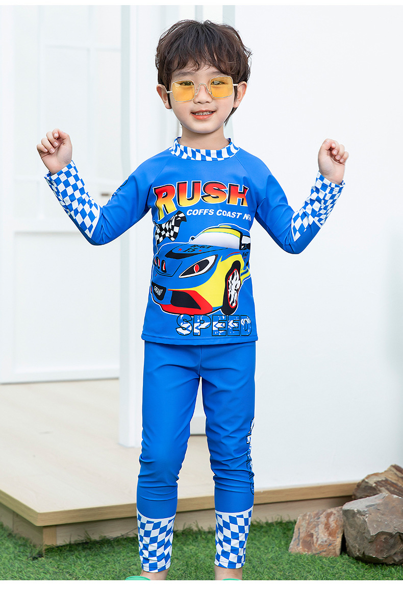 어린이 수영복 소년 2024 새로운 만화 귀여운 바지 분할 태양 보호 수영복 소년 온천 수영스토어 가기
