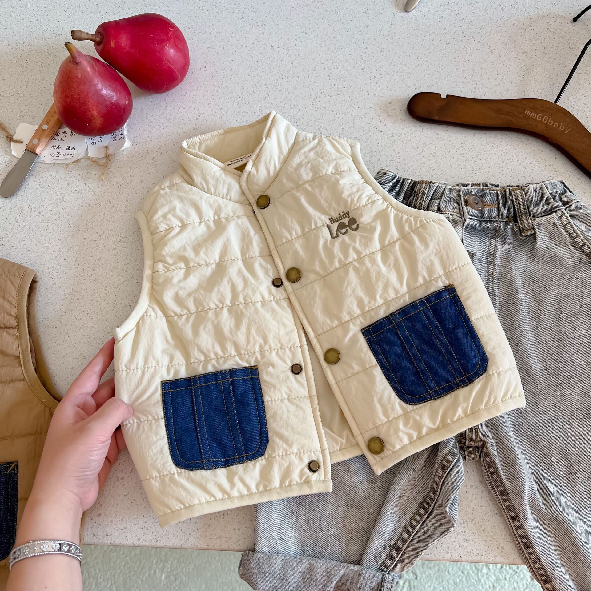 남학생을위한 코튼 조끼 2024 봄 새로운 트렌디 한 어린이 코트 아기 그물 빨간색 작은 조끼스토어 가기