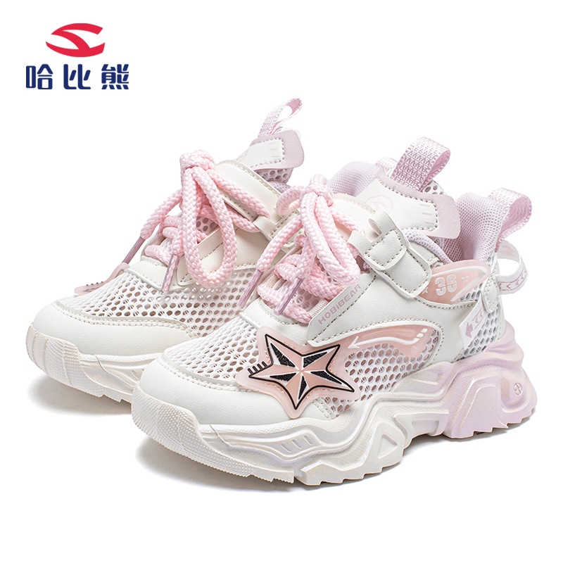 Habixiong 싱글 넷 여름 소녀 운동화 벨크로 중공 메쉬 소녀 캠퍼스 운동화 원피스 배달