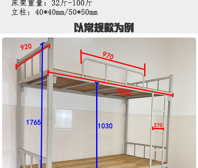상하 이층 철침대 학생 아파트 철 이중층 철침대 이중 직원 기숙사 침대 건설 현장 높고 낮은 선반 침대