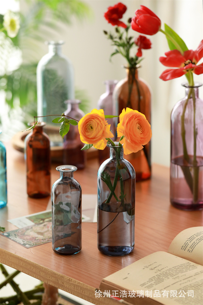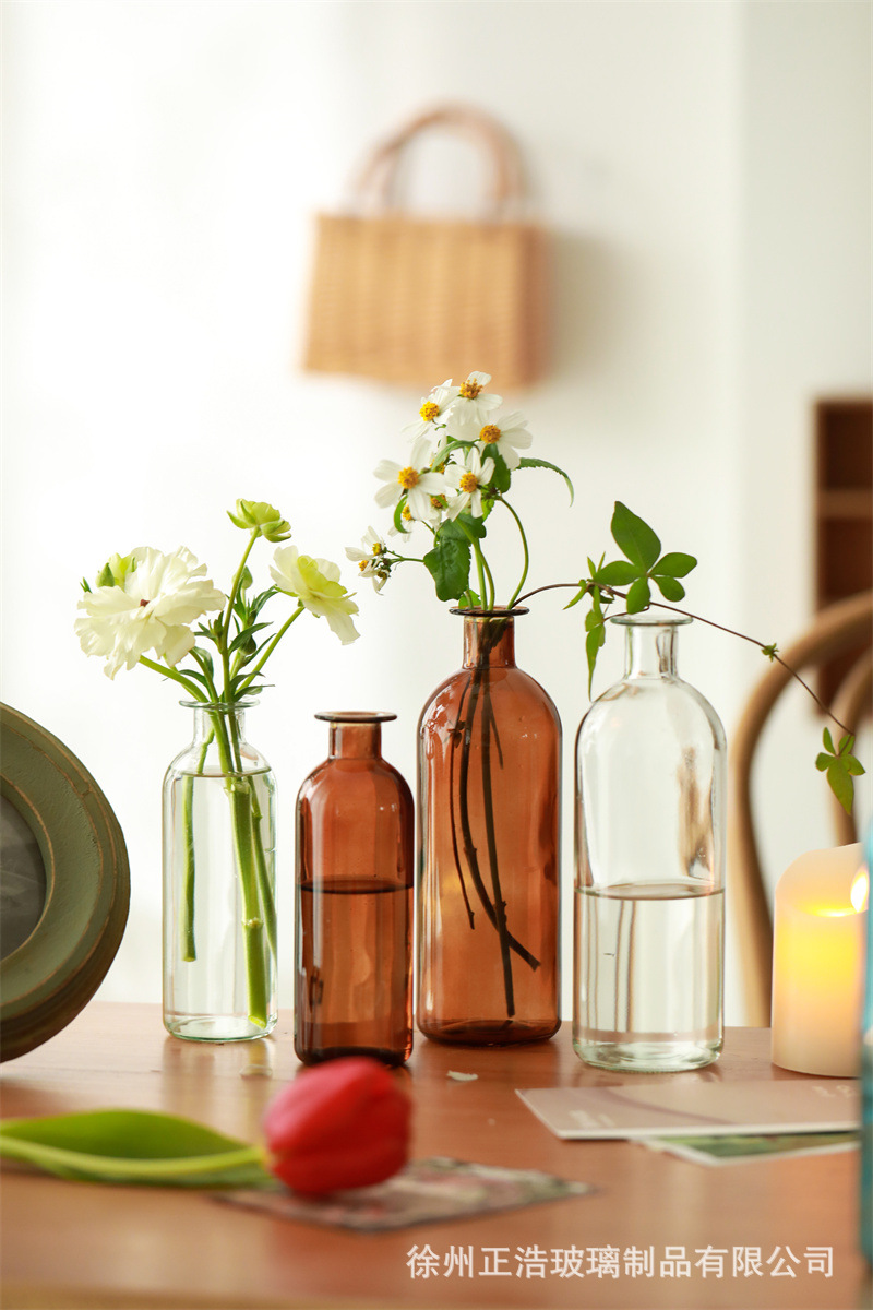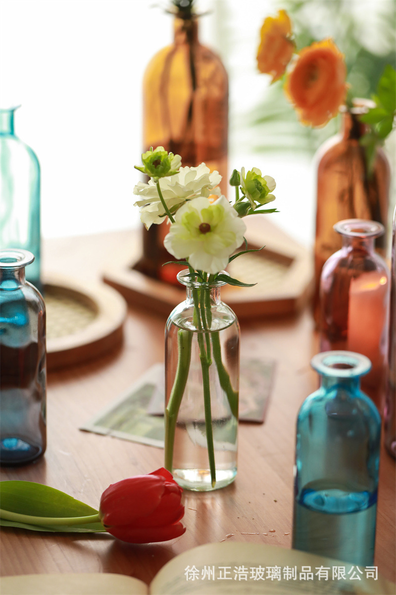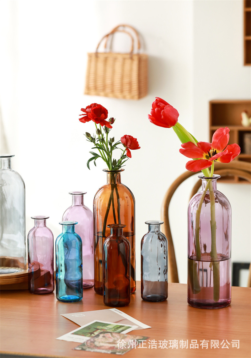 공장 도매 한국 작은 입 유리 꽃병 장식 홈 장미 꽃 녹색 식물 바탕 화면 장식