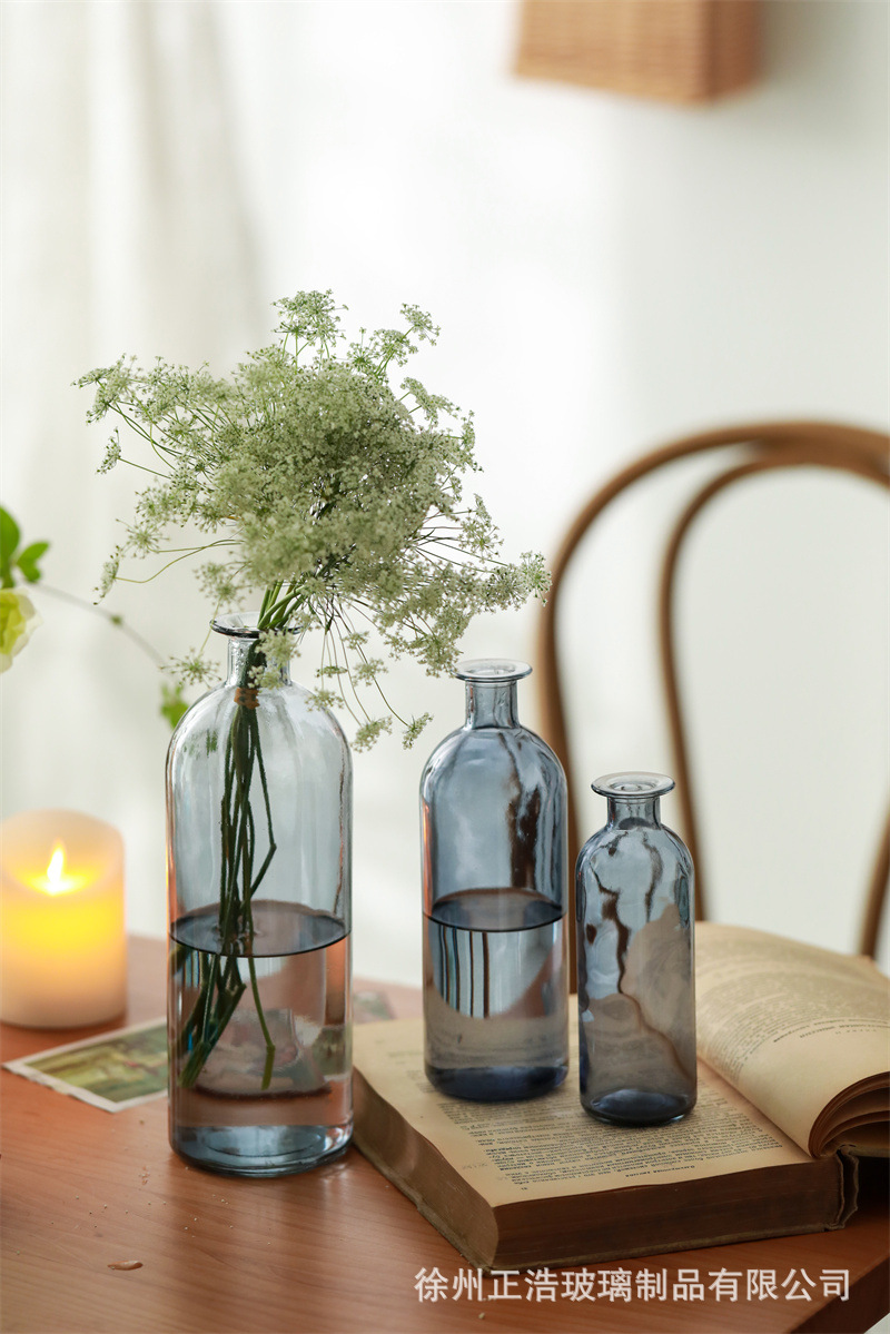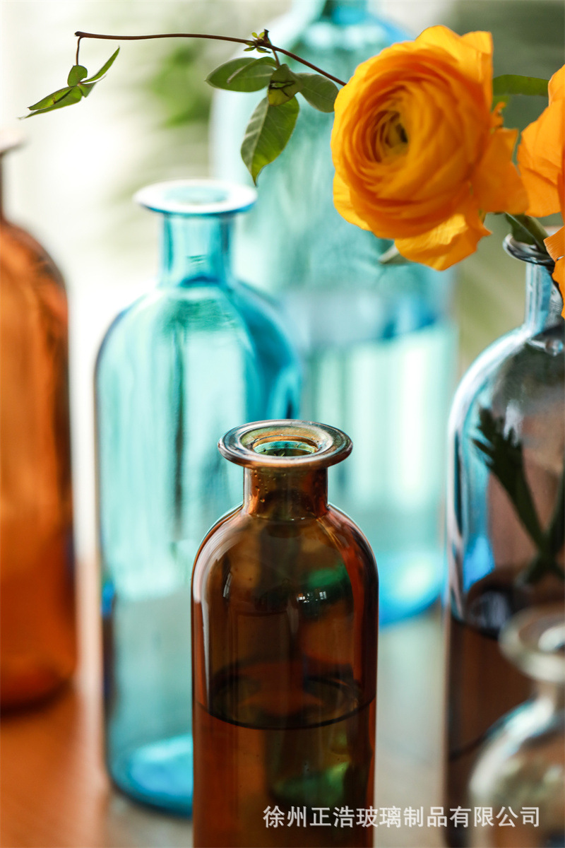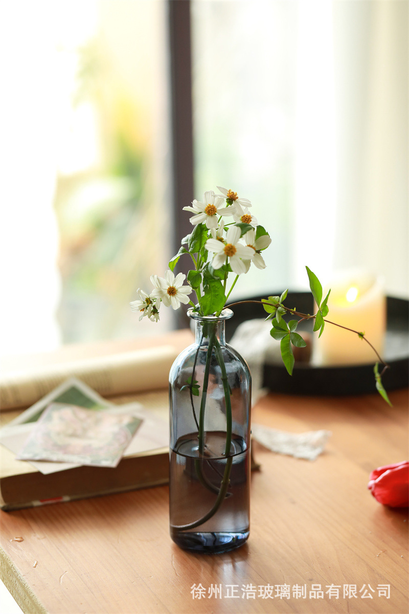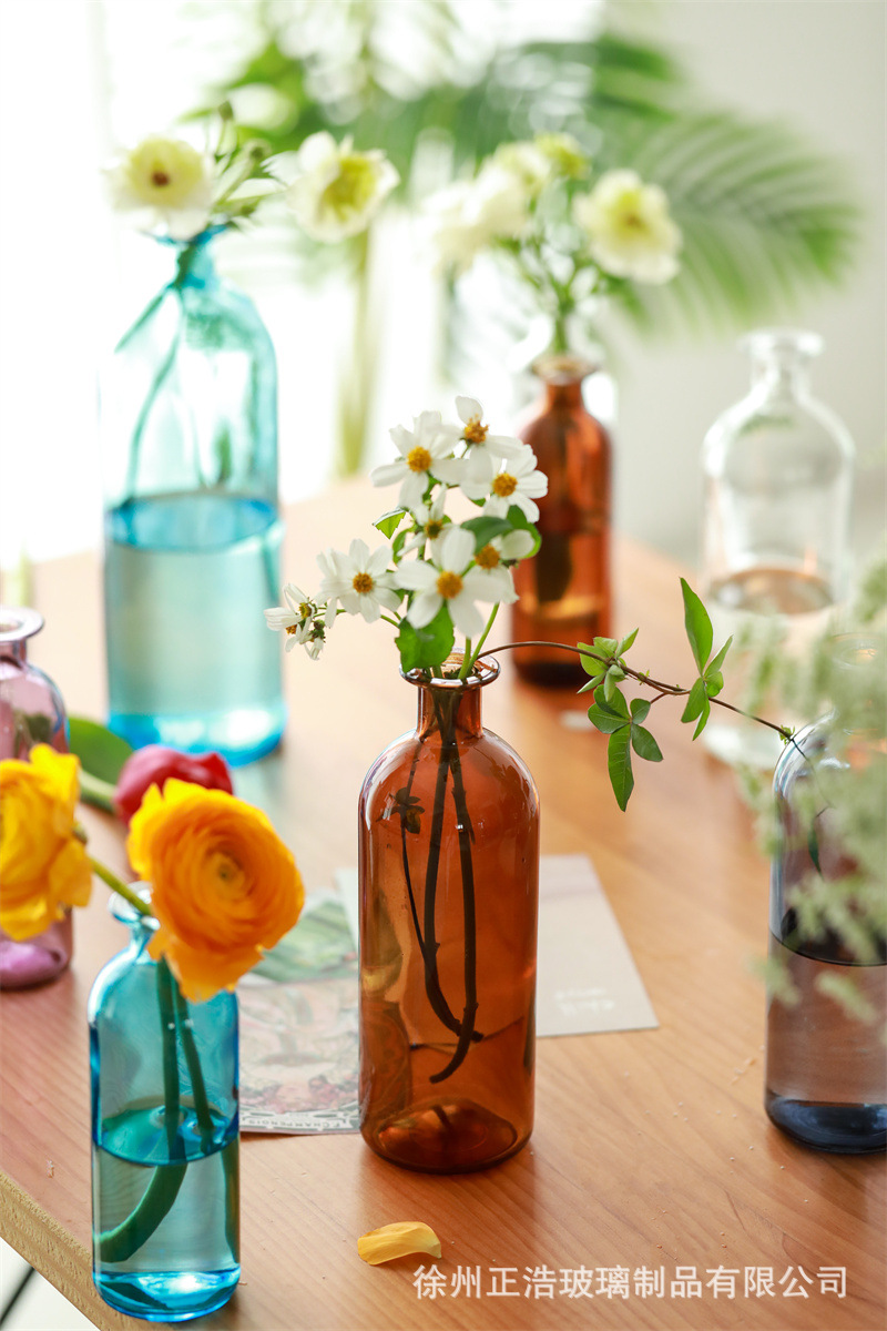공장 도매 한국 작은 입 유리 꽃병 장식 홈 장미 꽃 녹색 식물 바탕 화면 장식
