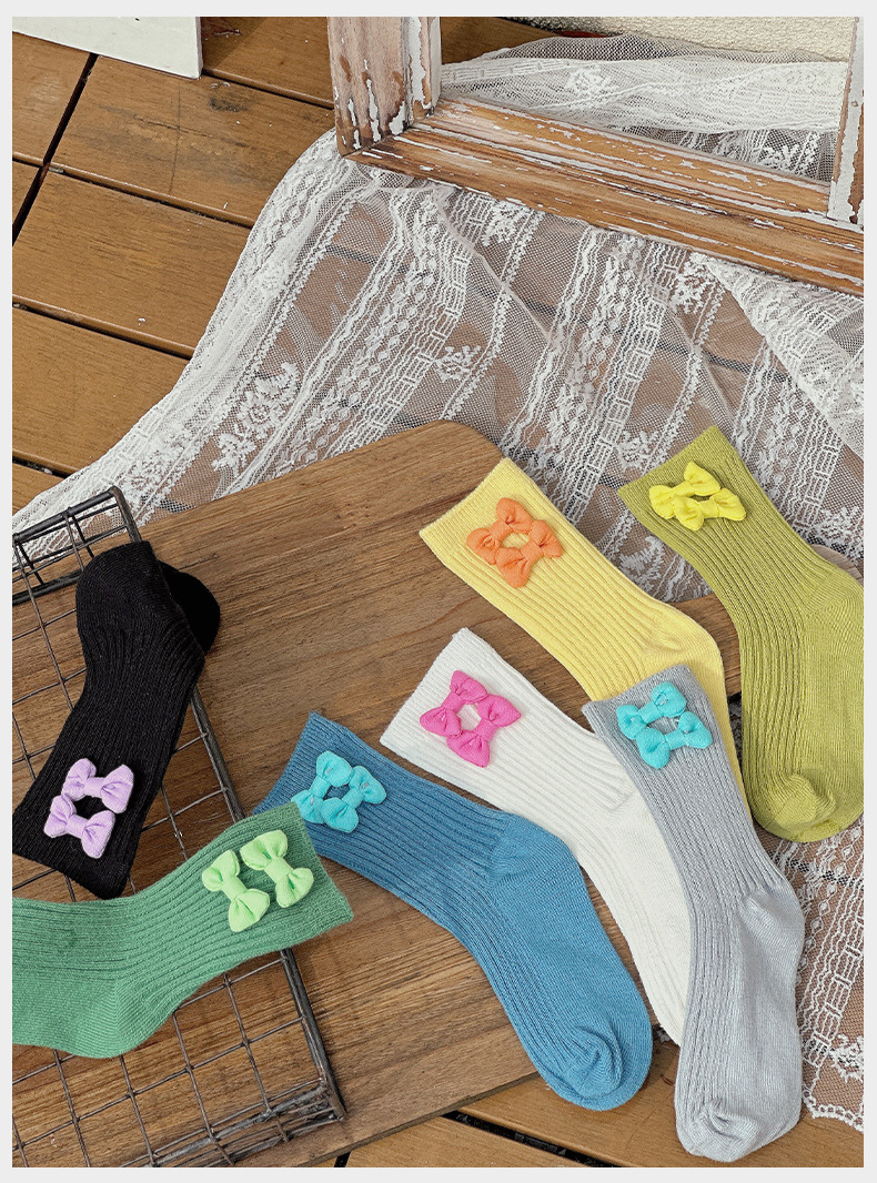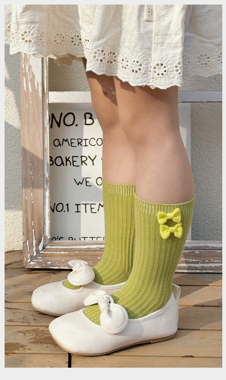 어린이 양말 봄과 가을 새 소녀의 서양식 활 중간 종아리 양말 아기 소녀의 단색 빗질면 종아리 양말스토어 가기