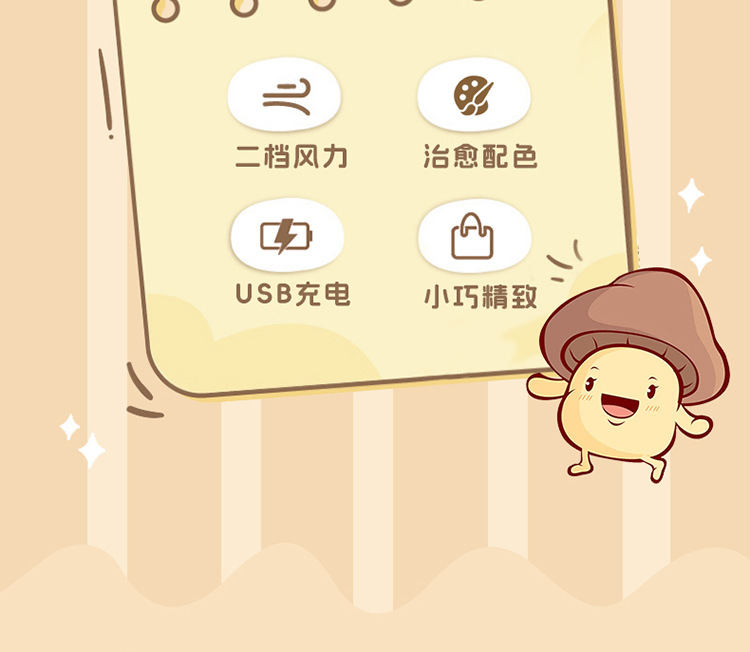새로운 만화 버섯 미니 핸드 헬드 팬 휴대용 USB 충전식 작은 데스크탑 전기 팬 선물 도매