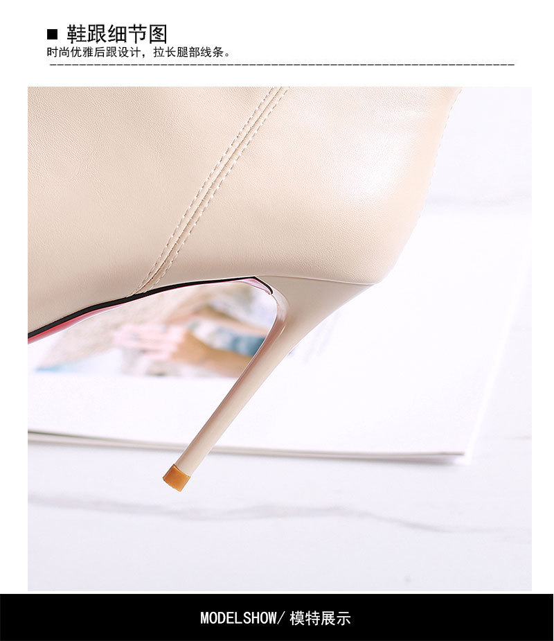 새로운 나이트 클럽 하이 부츠 여성 2023 봄과 가을 뾰족한 하이힐 부츠 스틸레토 힐 사이드 지퍼 슬리밍 올 매치 하이 부츠스토어 가기