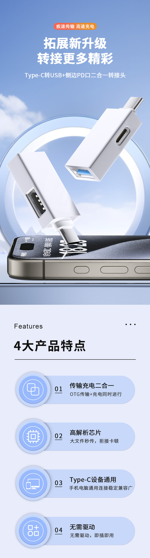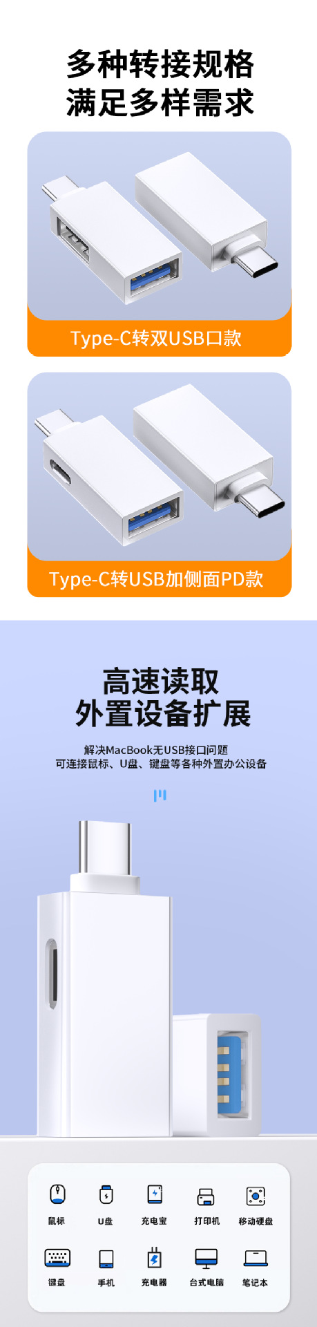 • TYPE-C - USB3.0+TYPE-C 충전 포트 어댑터 알루미늄 합금