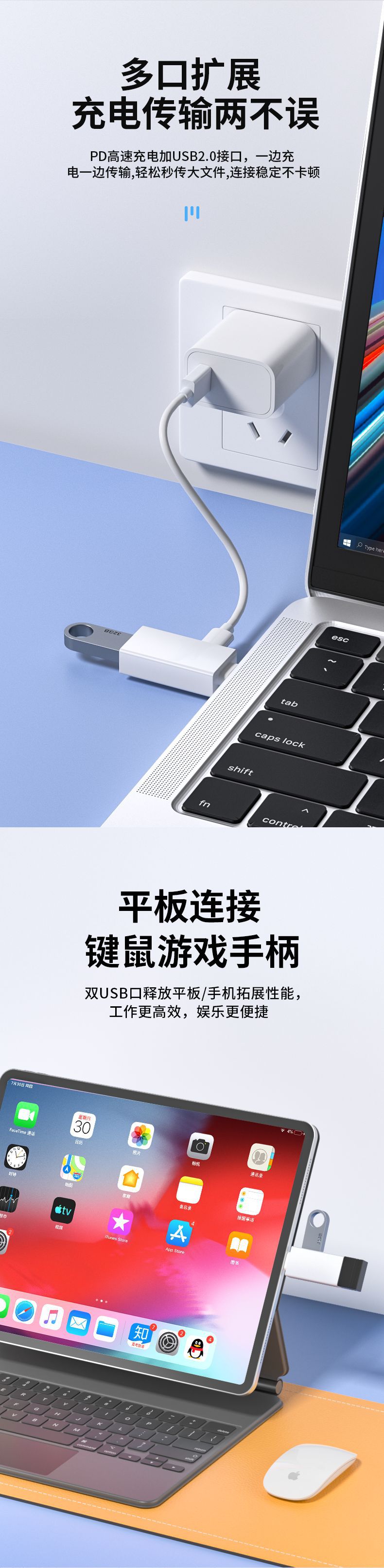 • USB3.0 + TYPE-C 충전 포트 확장 어댑터에 TYPE-C