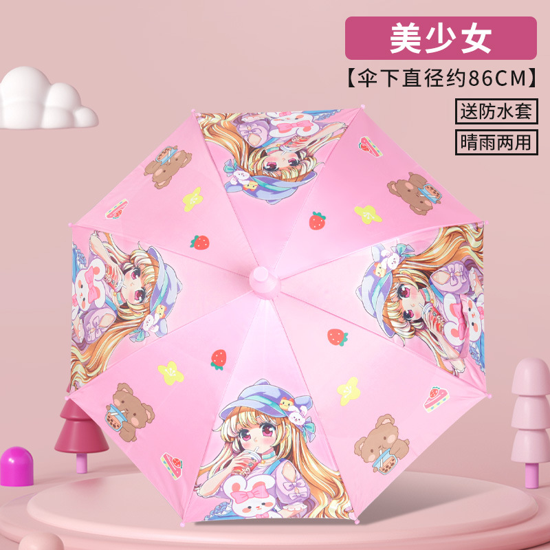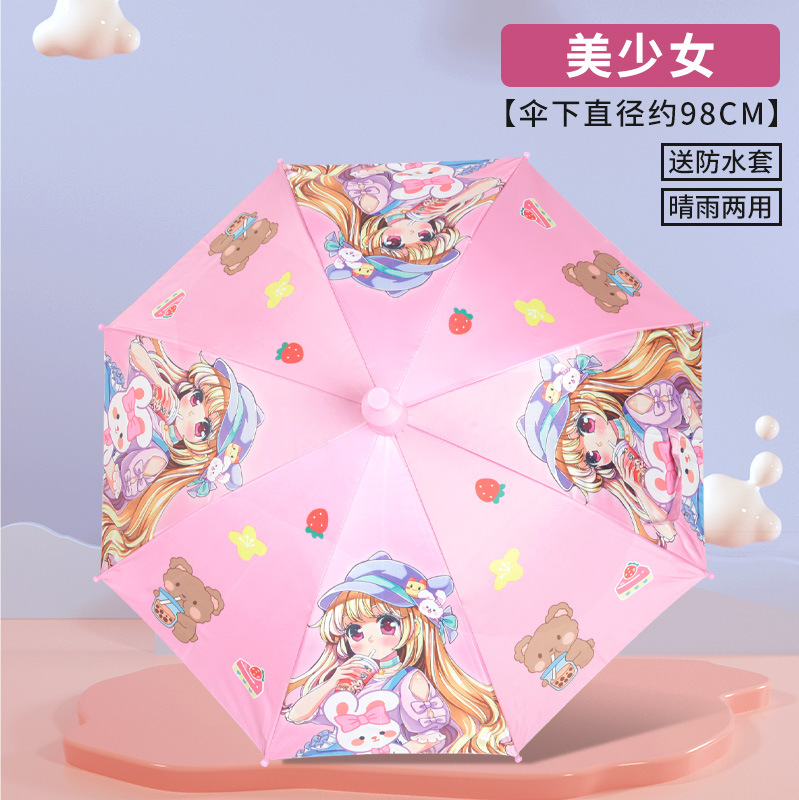 공장 현장 도매 어린이 만화 우산 소년과 소녀 초등학교 태양 보호 우산 자동 우산 인쇄 가능한 로고스토어 가기