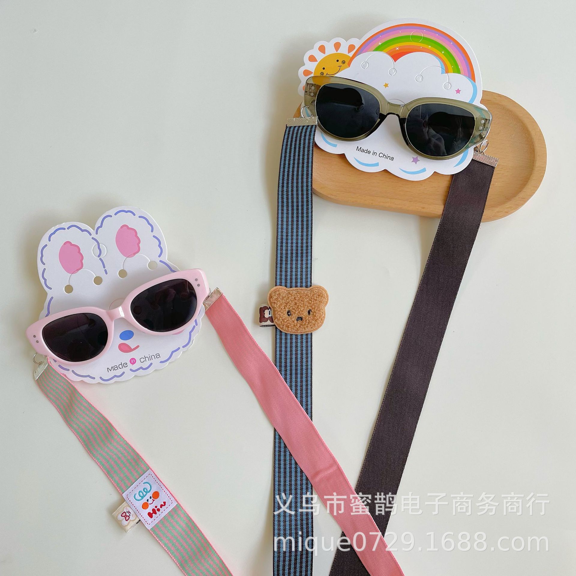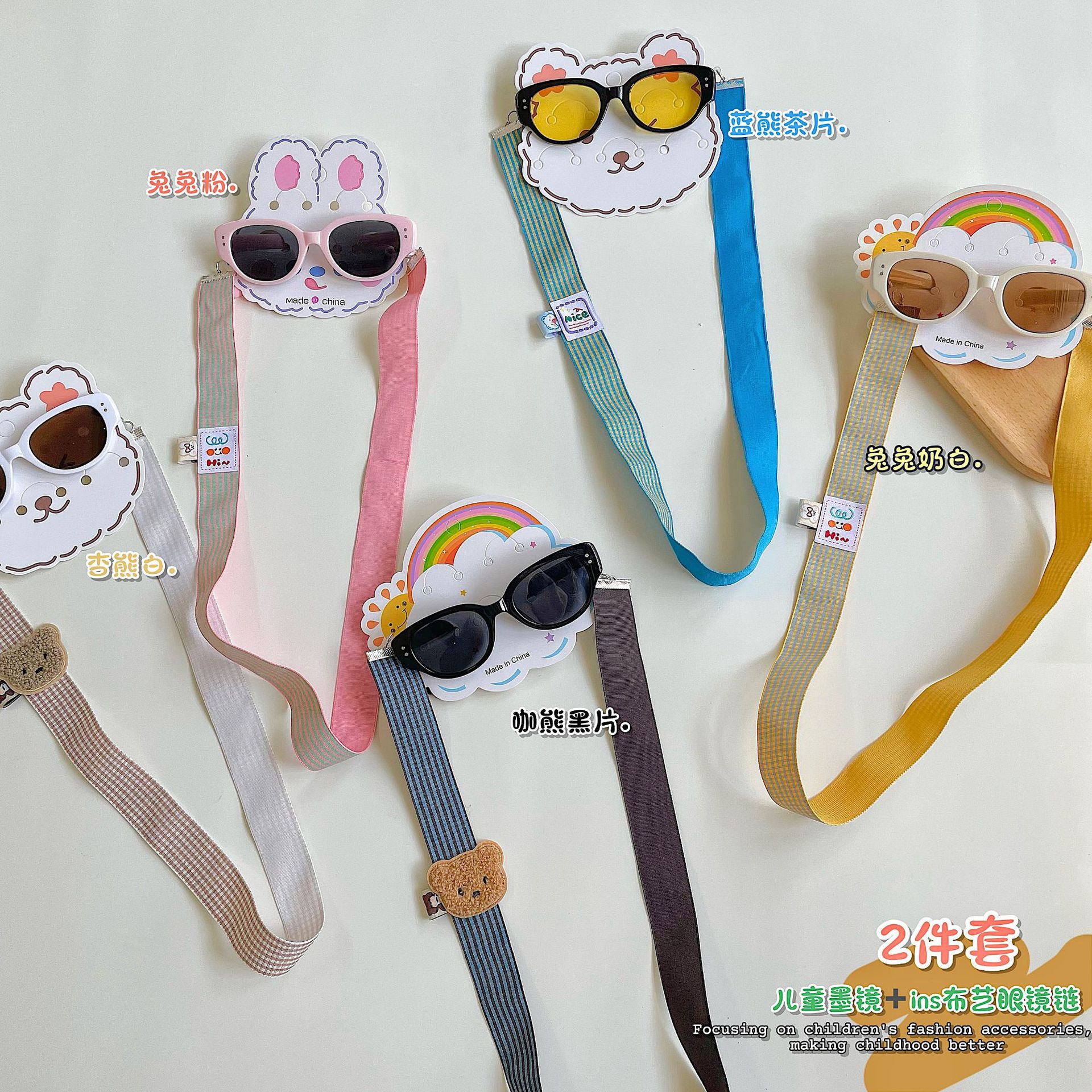 어린이 패션 고양이 눈 선글라스 패브릭 안경 체인 세트 봄과 여름 새로운 아기 여행 태양 보호 선글라스