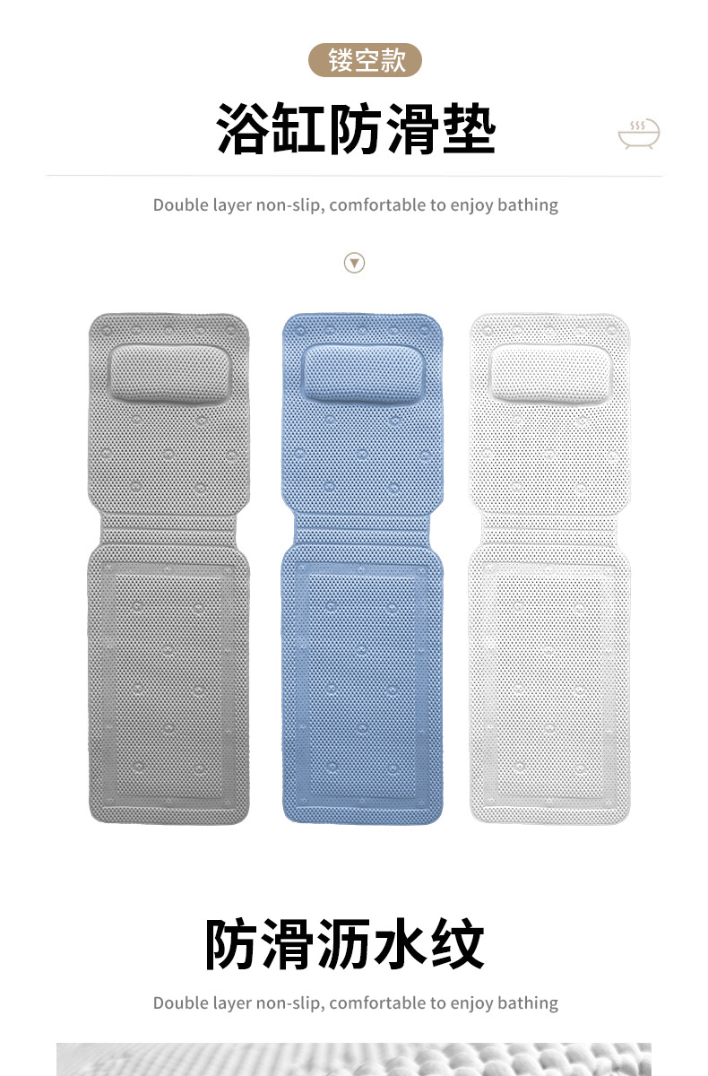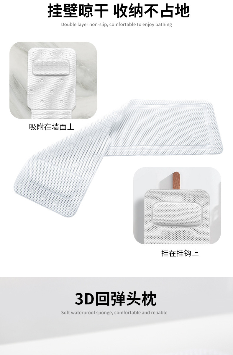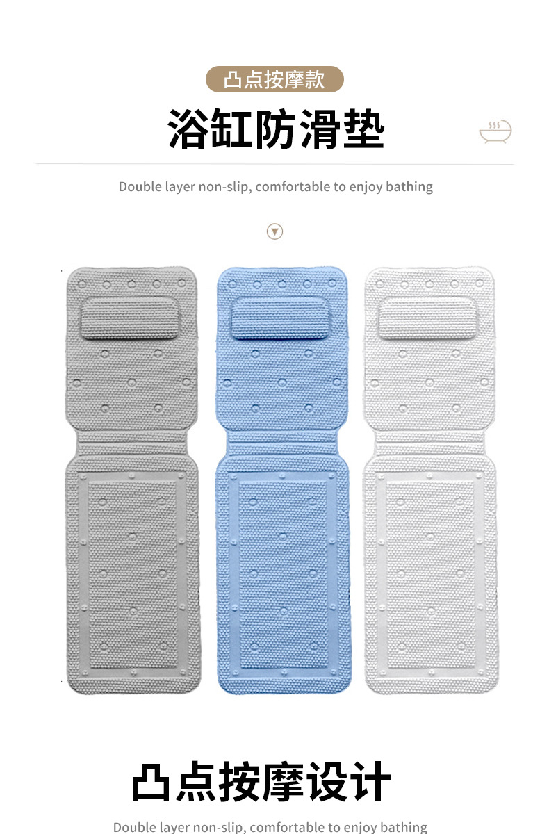 PVC 발포 긴형 욕조 매트 미끄럼 방지 욕조 매트 베개 포함 흡착식 욕조 매트 마사지 돌기