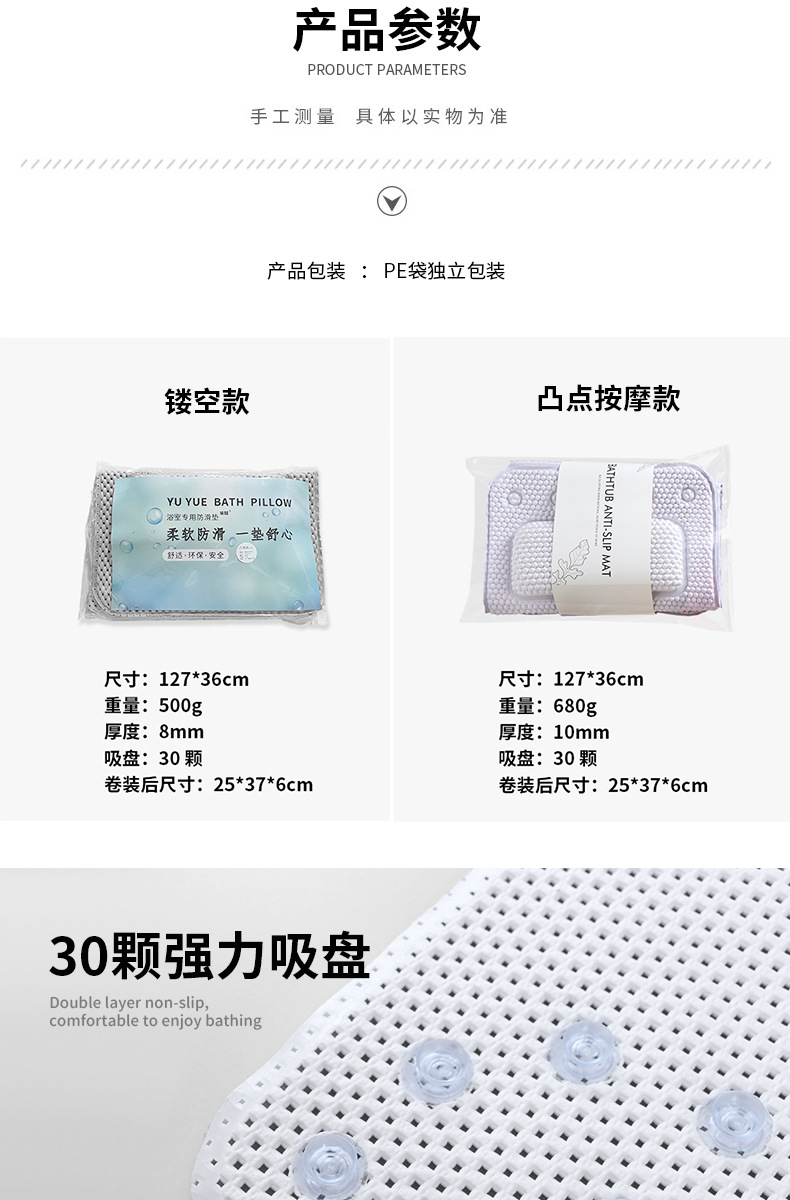 PVC 발포 긴형 욕조 매트 미끄럼 방지 욕조 매트 베개 포함 흡착식 욕조 매트 마사지 돌기스토어 가기