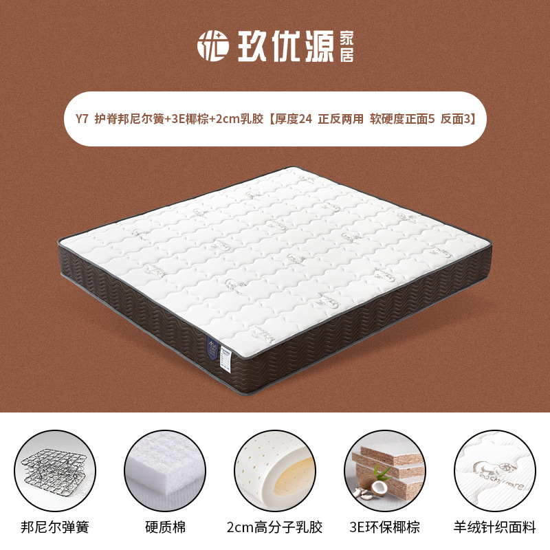 • Y7 척추 보호 보니에 스프링 + 3E 코코넛 야자 + 2cm 라텍스 [두께 24, 리버시블, 부드러움과 경도 앞면 5, 뒷면 3]
