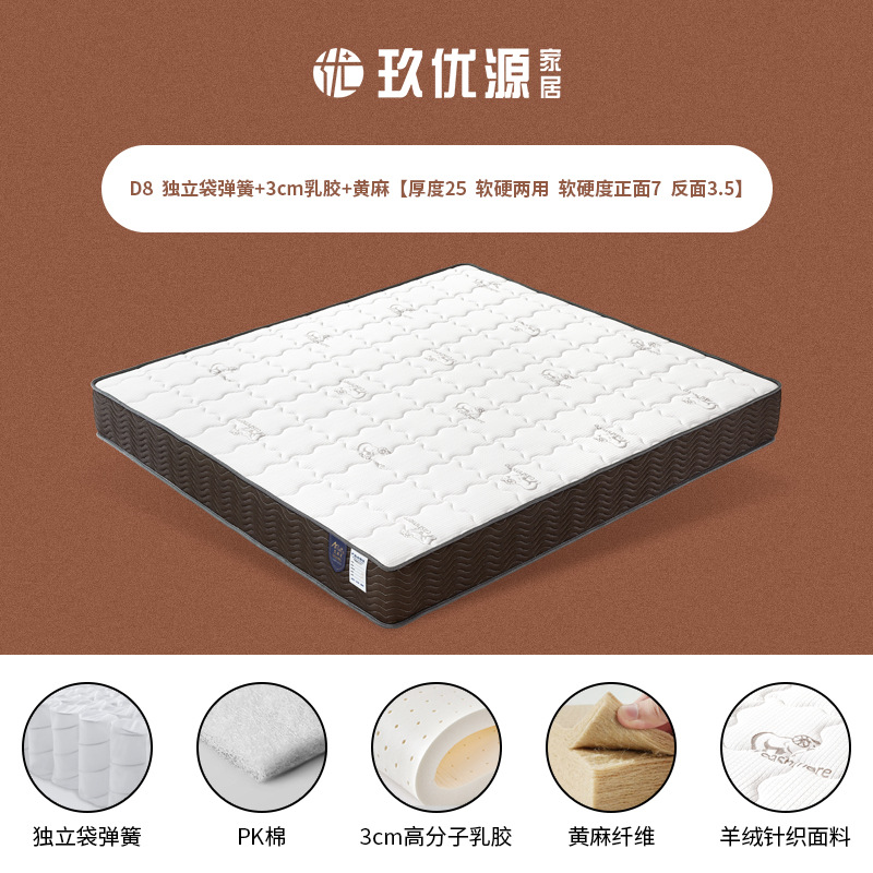 • D8 독립백 스프링 + 3cm 라텍스 + 황마 [두께 25, 소프트 및 하드, 앞면 7, 뒷면 3.5]