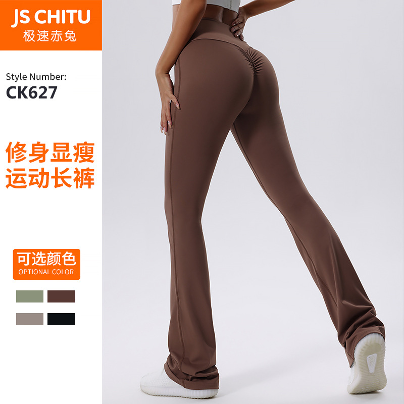 유럽과 미국의 누드 스포츠 피트니스 바지 높은 허리 엉덩이 리프팅 요가 바지 여성의 구름 통기성 편안한 플레어 바지 여성의 국경스토어 가기