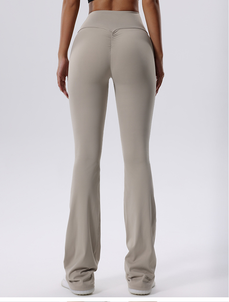 유럽과 미국의 누드 스포츠 피트니스 바지 높은 허리 엉덩이 리프팅 요가 바지 여성의 구름 통기성 편안한 플레어 바지 여성의 국경