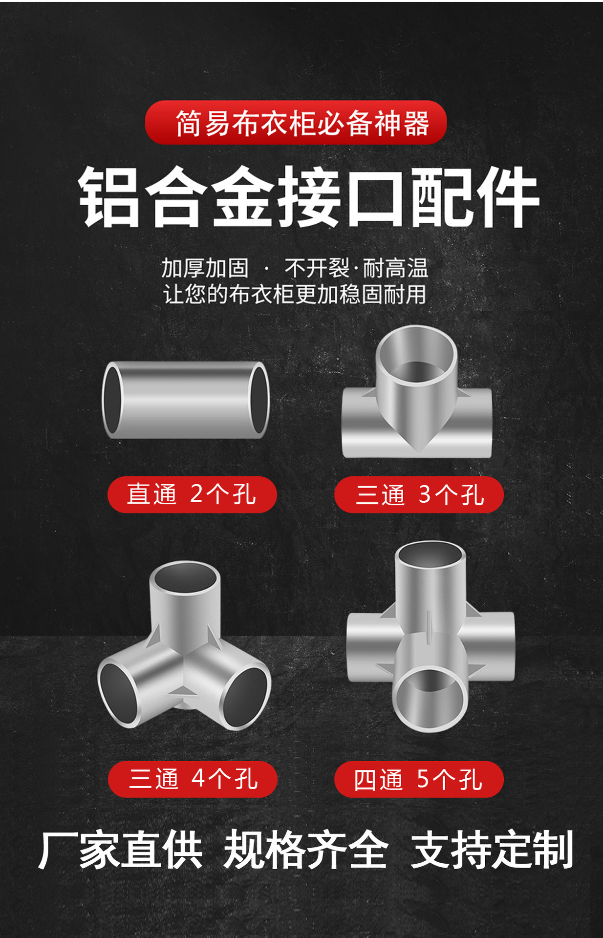 천 옷장 액세서리 간단한 옷장 신발 랙 3 방향 4 방향 금속 인터페이스 건조기 부품 알루미늄 합금 강철 조인트
