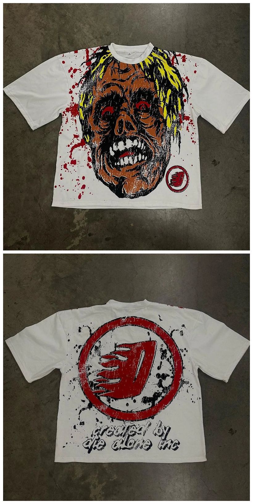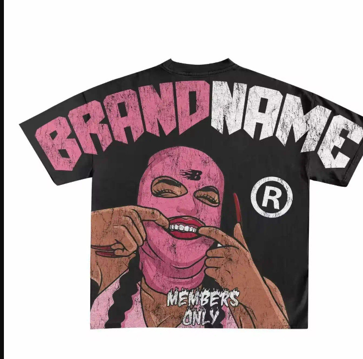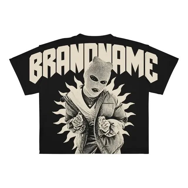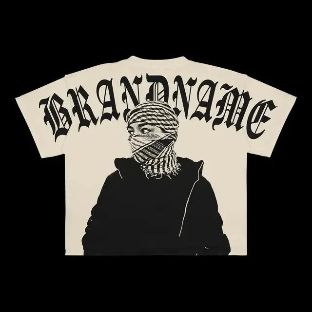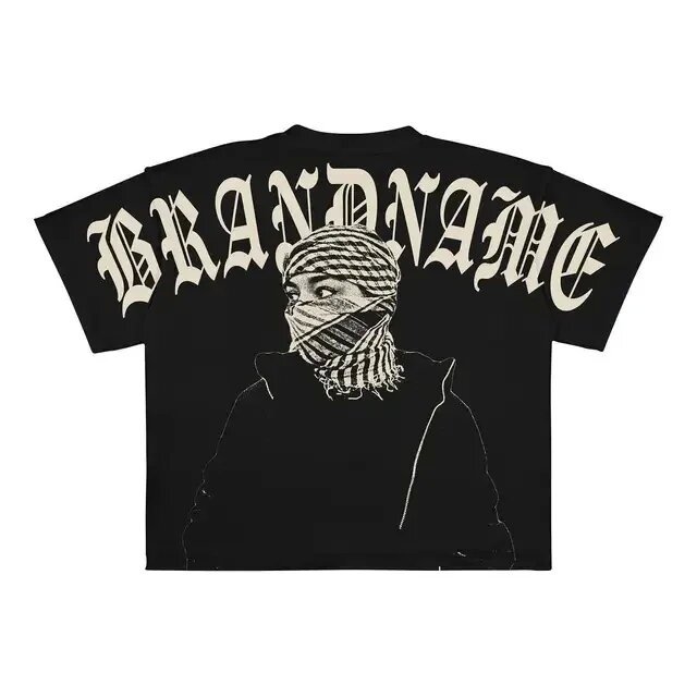 크로스보더 유럽 및 미국 트렌드 레터 프린트 남성 힙합 고딕 스타일 대형 패턴 프린트 펑크 반팔 캐주얼스토어 가기