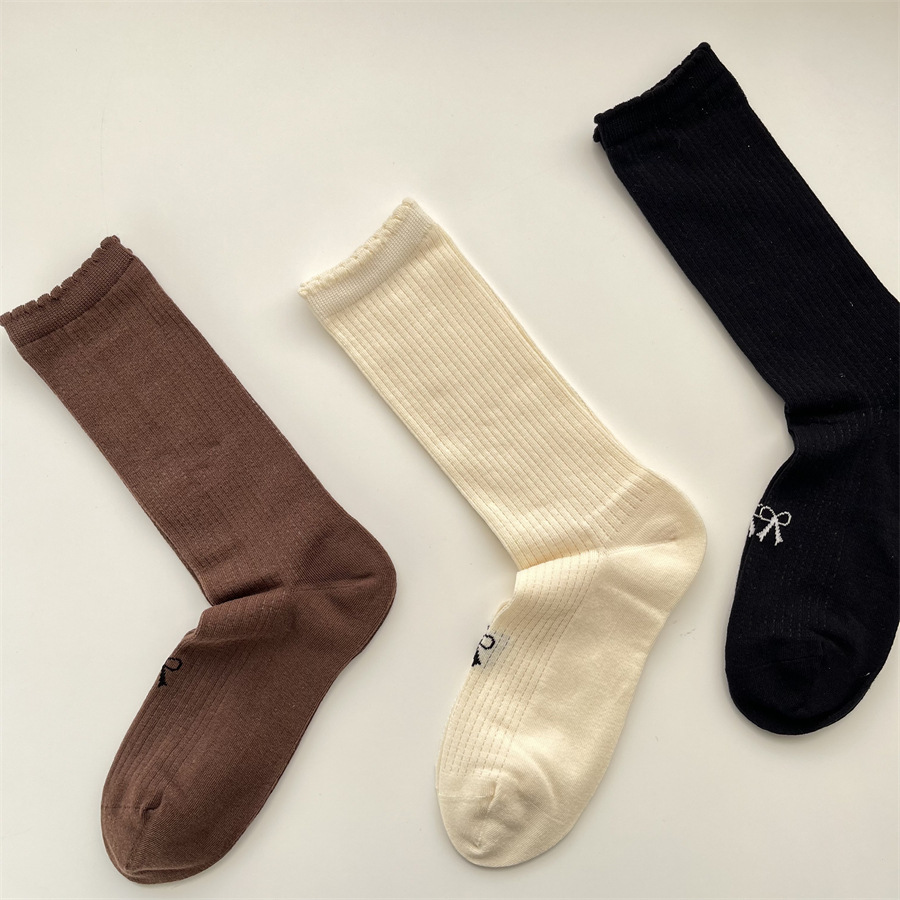 한국 스타일 귀여운 instep 활 양말 여성 일본식 나무 귀 메쉬 중간 종아리 길이 양말 코튼 단색 파일 양말스토어 가기